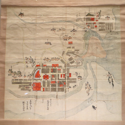 「豊後府内古図」(1829年/大分市歴史資料館)。 大友宗麟が築いた国際都市 大分市の地図。アジアや西洋と交流していました。