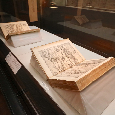 イタリアからのお土産「世界都市図帳」ゲオルグ・ブラウン編 フランツ・ホーヘンベルフほか彫版(1572~ 1618年/兵庫・神戸市立博物館)。ヨーロッパやその近隣都市の約 450都市のイラスト集。開かれているページは奥がセビリア、手前がリスボン。