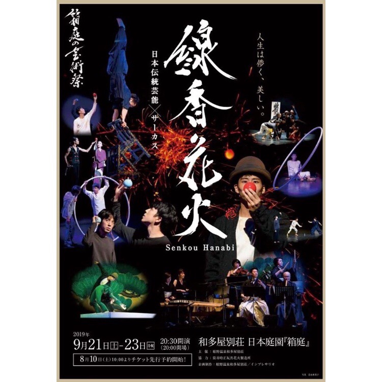 出演者:谷口界〔アクロバット〕、ハチロウ〔ジャグリング〕、米澤 一平〔タップダンス〕、望月ゆうさく〔ディアボロ〕、宮窪 研〔炎舞〕、平井美玖〔バトントワリング〕、茉莉花〔コントーション〕、高取優耶〔椅子倒立〕、藤間純六珠〔日本舞踊〕、中島美紀〔書道〕、森永基木〔津軽三味線〕、みやざき都〔箏〕、山崎 箜山〔尺八〕、坂口のどか〔囃子〕、西尾麻衣子〔ヴァイオリン〕、月岡翔生子〔ピアノ〕