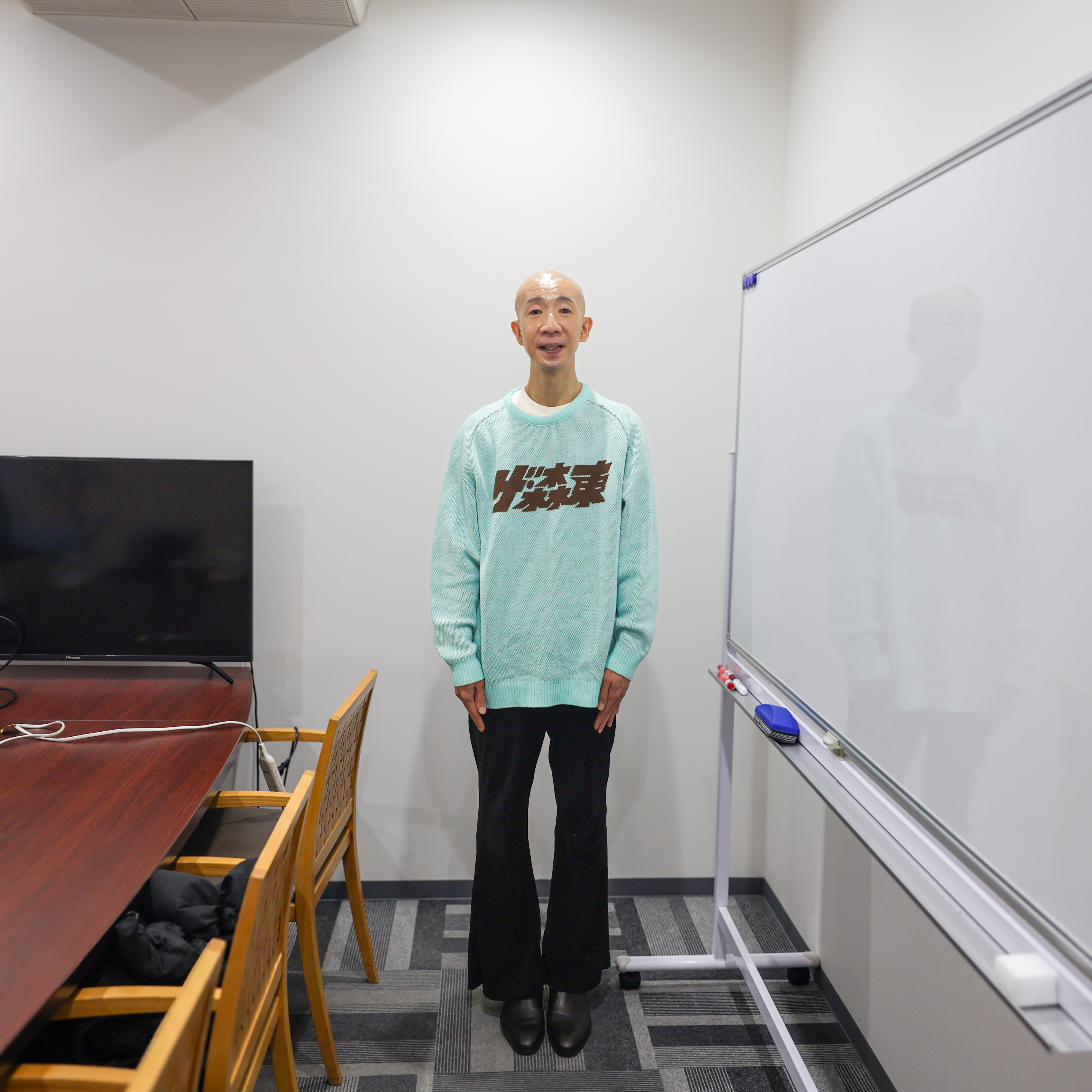 ひょうろくさん:今年の1月にザ・森東さんが開催された「株主総会」というファン感謝祭の中で、ぼくが入社できるかどうかという企画があって、その中で自分は正式に「部外者」という決定にはなりました。そんな状況で、ぼくが今、ザ・森東のロゴが入った服を着ているのもうしろめたい気持ちではあるのですが、ザ・森東さんから「こんなお仕事があるよ」とおっしゃっていただいて、チャンスと思って、引き受けました。「株主総会」を見ていた方からは、「お前、ダメだったじゃん」って言われるかもしれないんですけど。