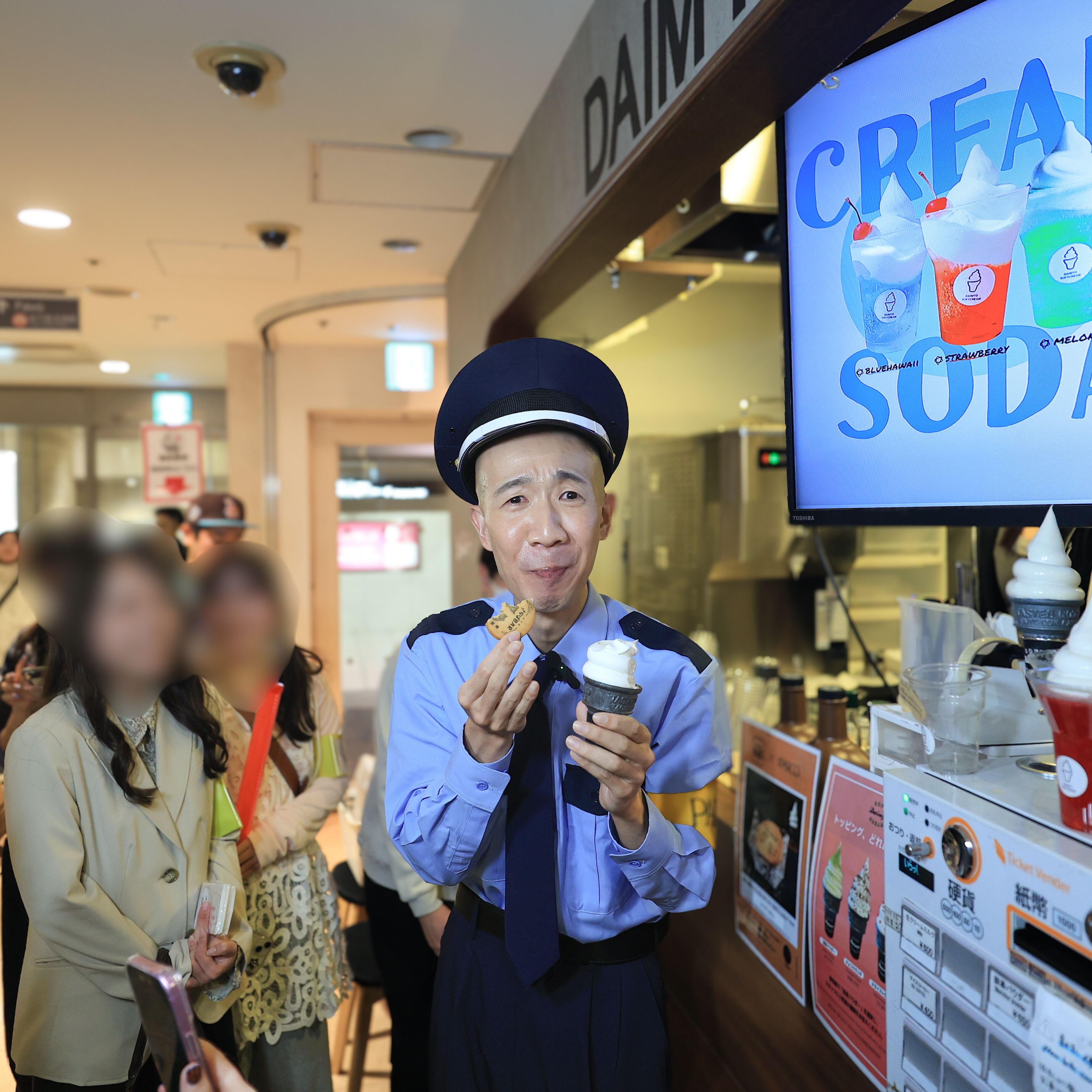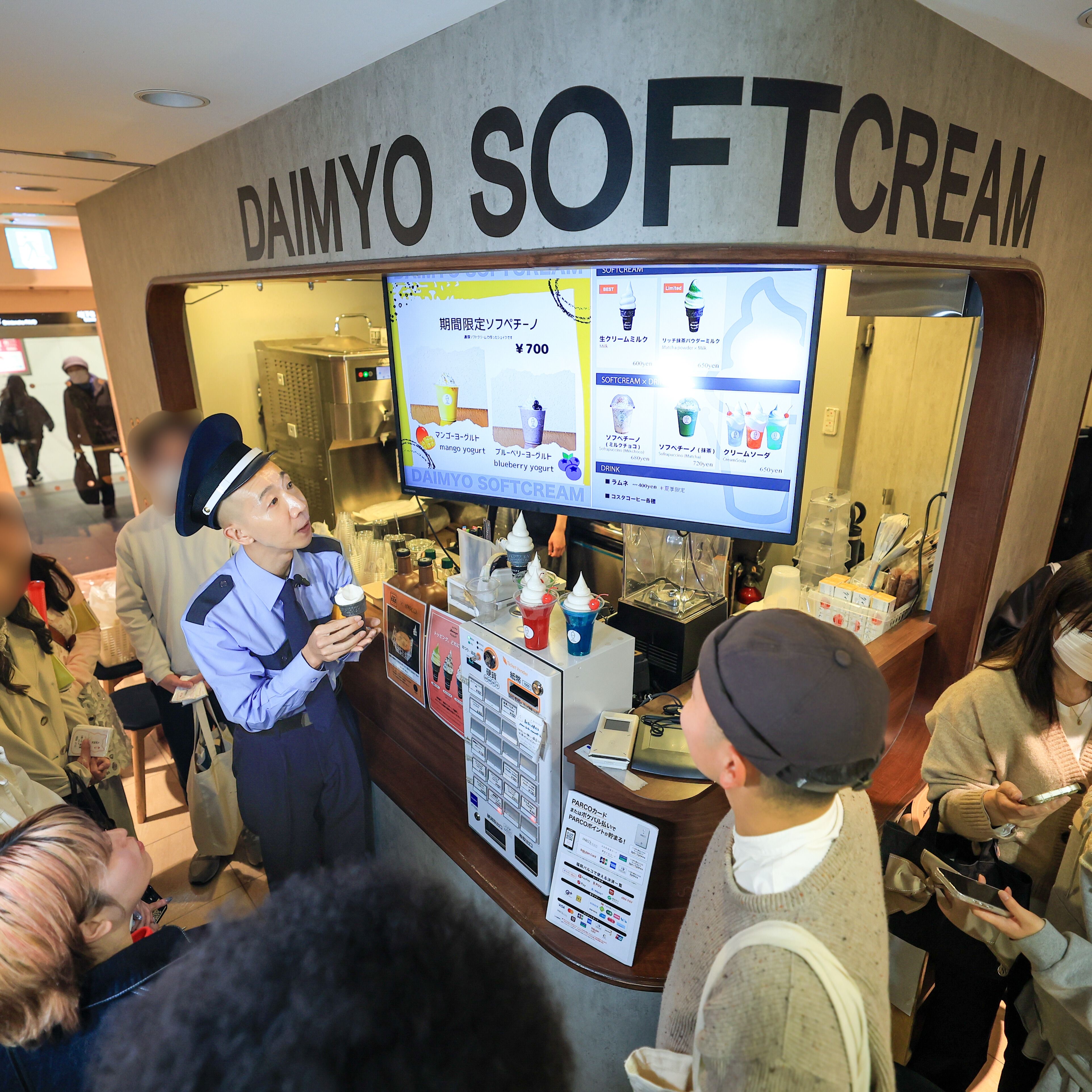 福岡パルコ本館地下1階「大名ソフトクリーム 福岡PARCO店」に到着したひょうろくさん。