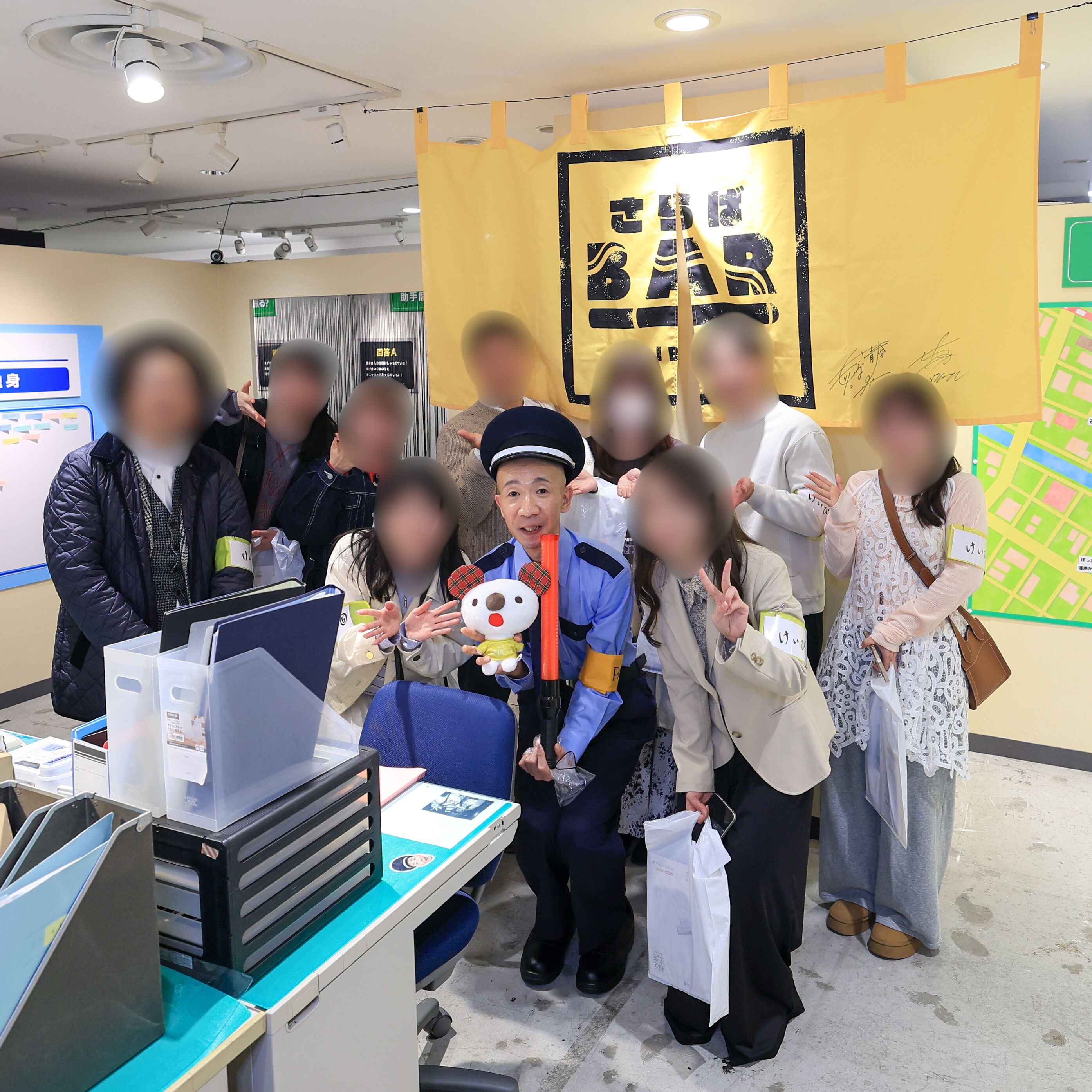 ひょうろくさんと今回の巡回警備イベントに参加されたみなさんで記念撮影。