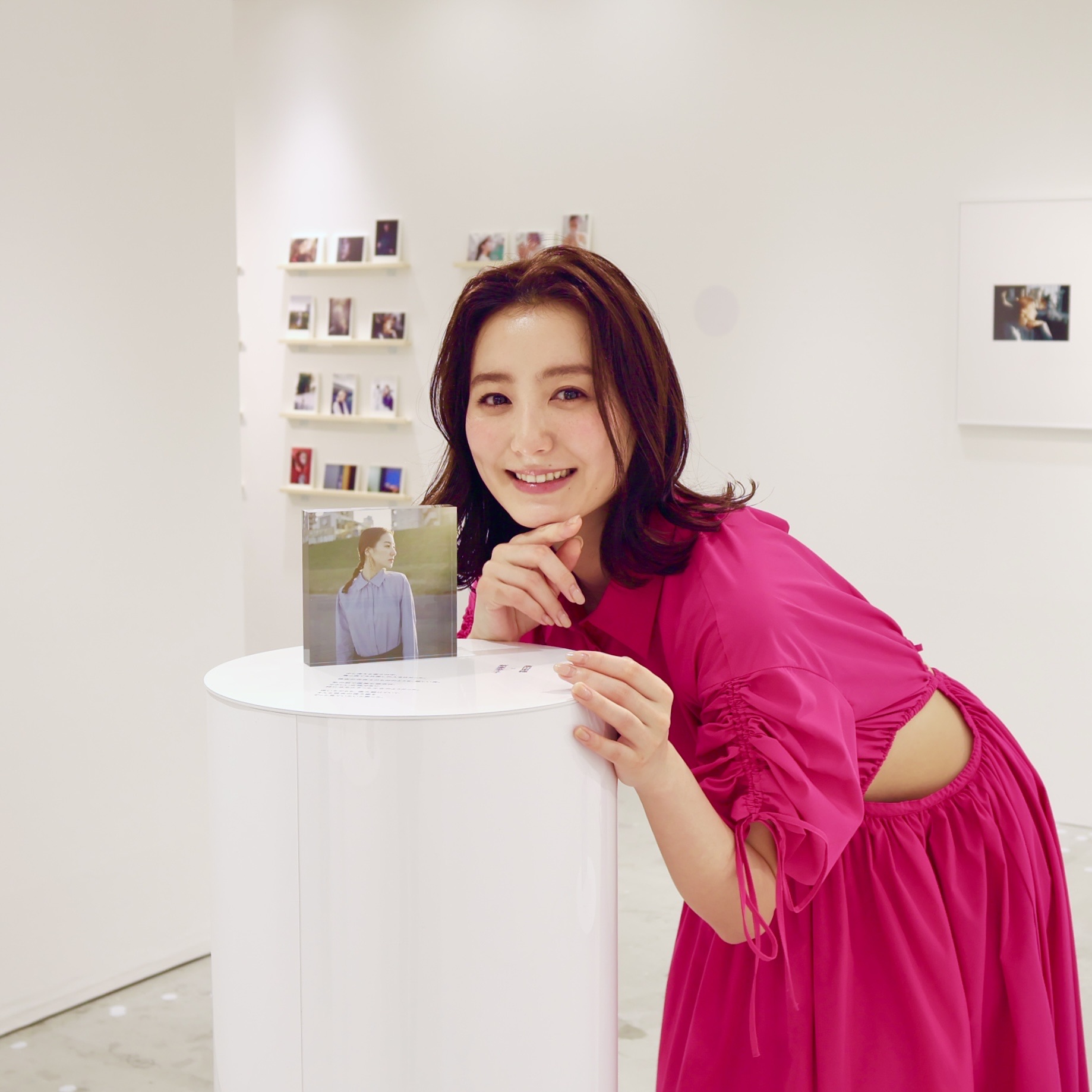 白い円柱の上には、写真をパネル化したアクリルキューブも展示されています。