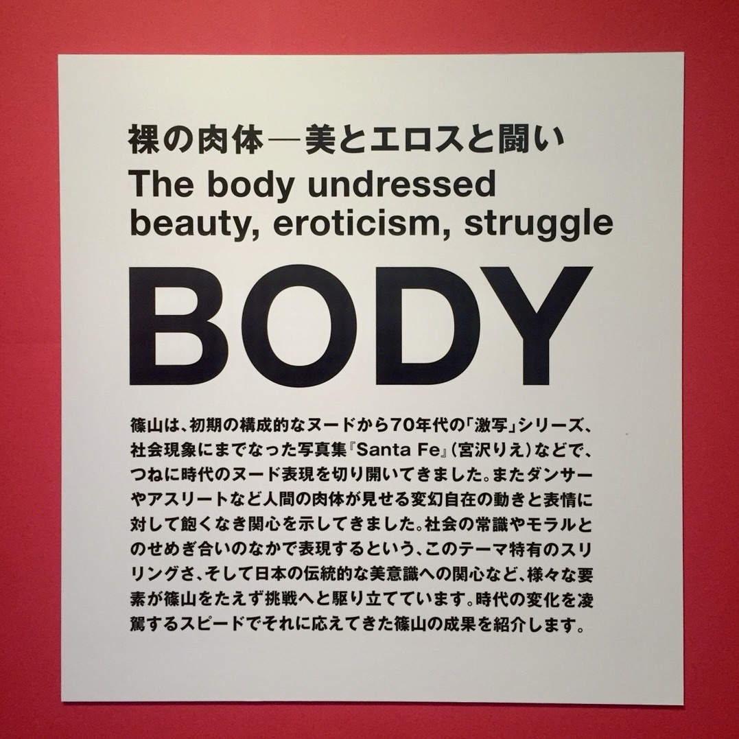 篠山紀信さんの50余年に渡るお仕事の中から、篠山さん自らが選ばれた写真約100点を大型パネルに仕立てて、美術館の空間に展示しています。