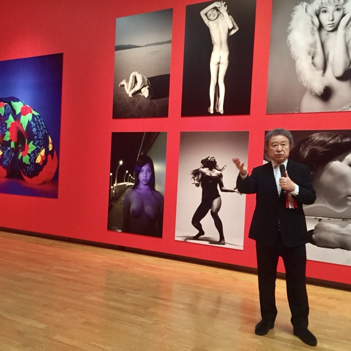 開会日の2016年12月18日(日)には篠山紀信さんが来場し、開会式の後のメディア内覧会では、自ら作品の解説を行なってくださいました。