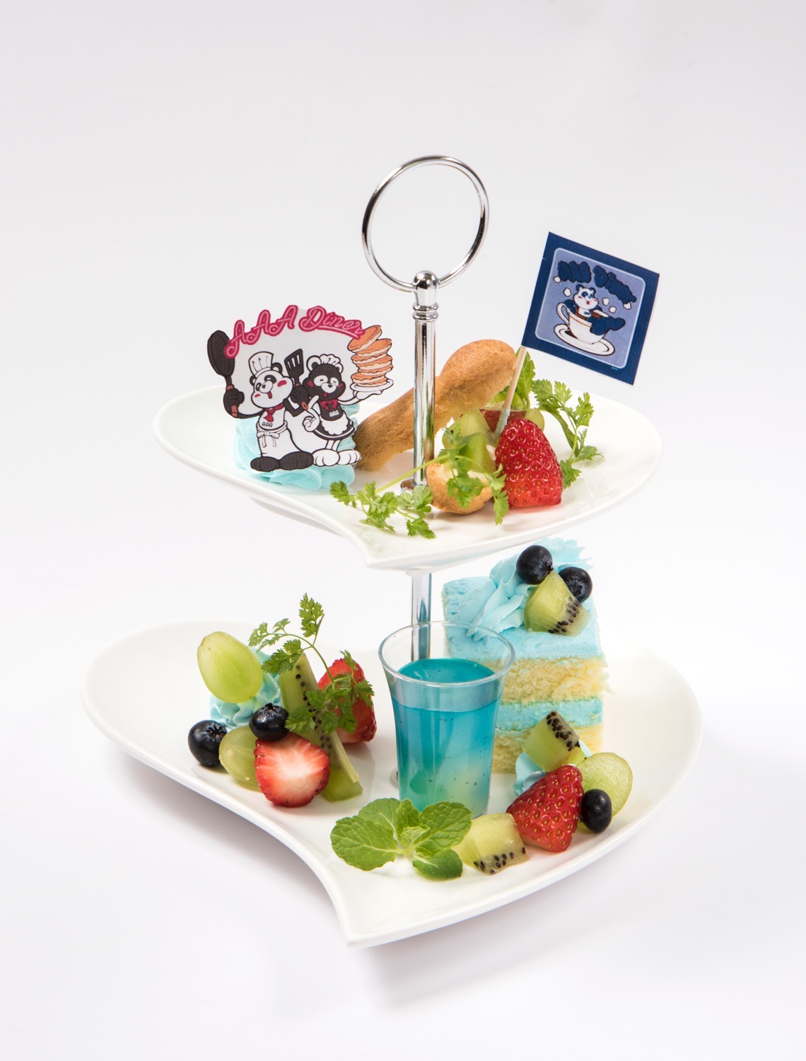 人気のレインボーパンケーキや、え~パンダのコットンキャンディーソーダなど、AAAメンバーに合わせた7 色やAAAの楽曲タイトルを使用したオリジナルメニュー、オフィシャルキャラクターの「え~パンダ」をモチーフにしたメニューが用意されています。