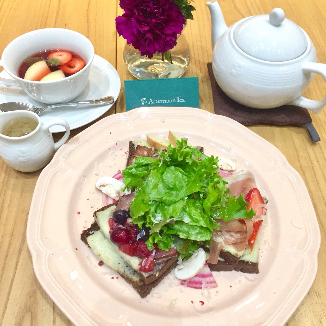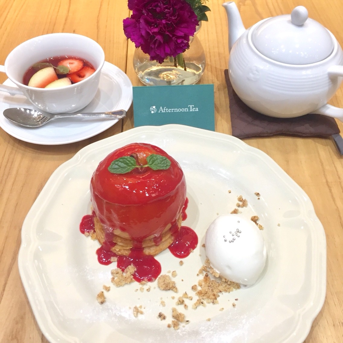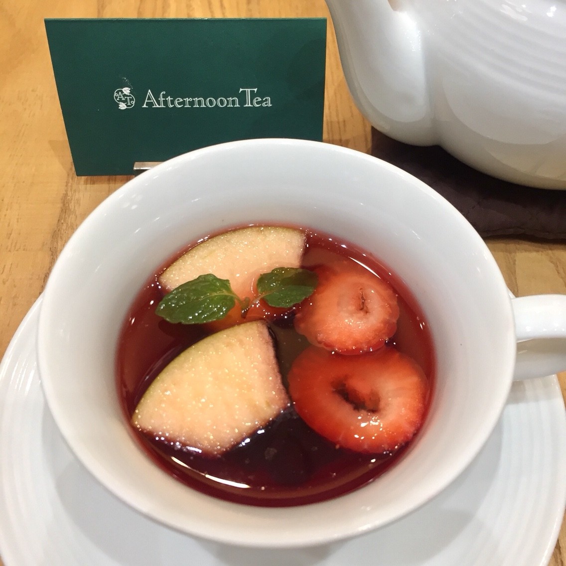 ティーカップだけでなく、ポットの中にも林檎とクランベリーが入っていました。