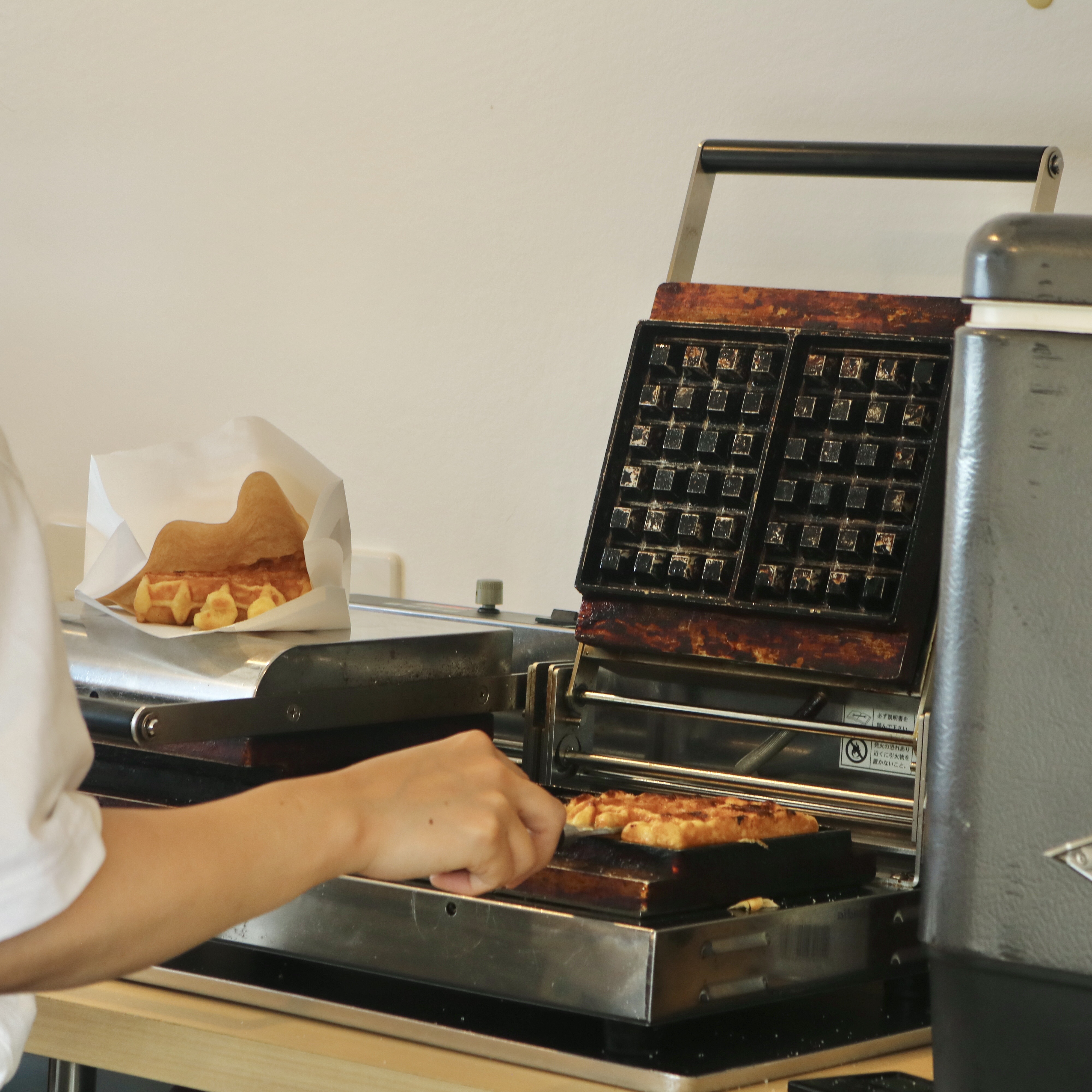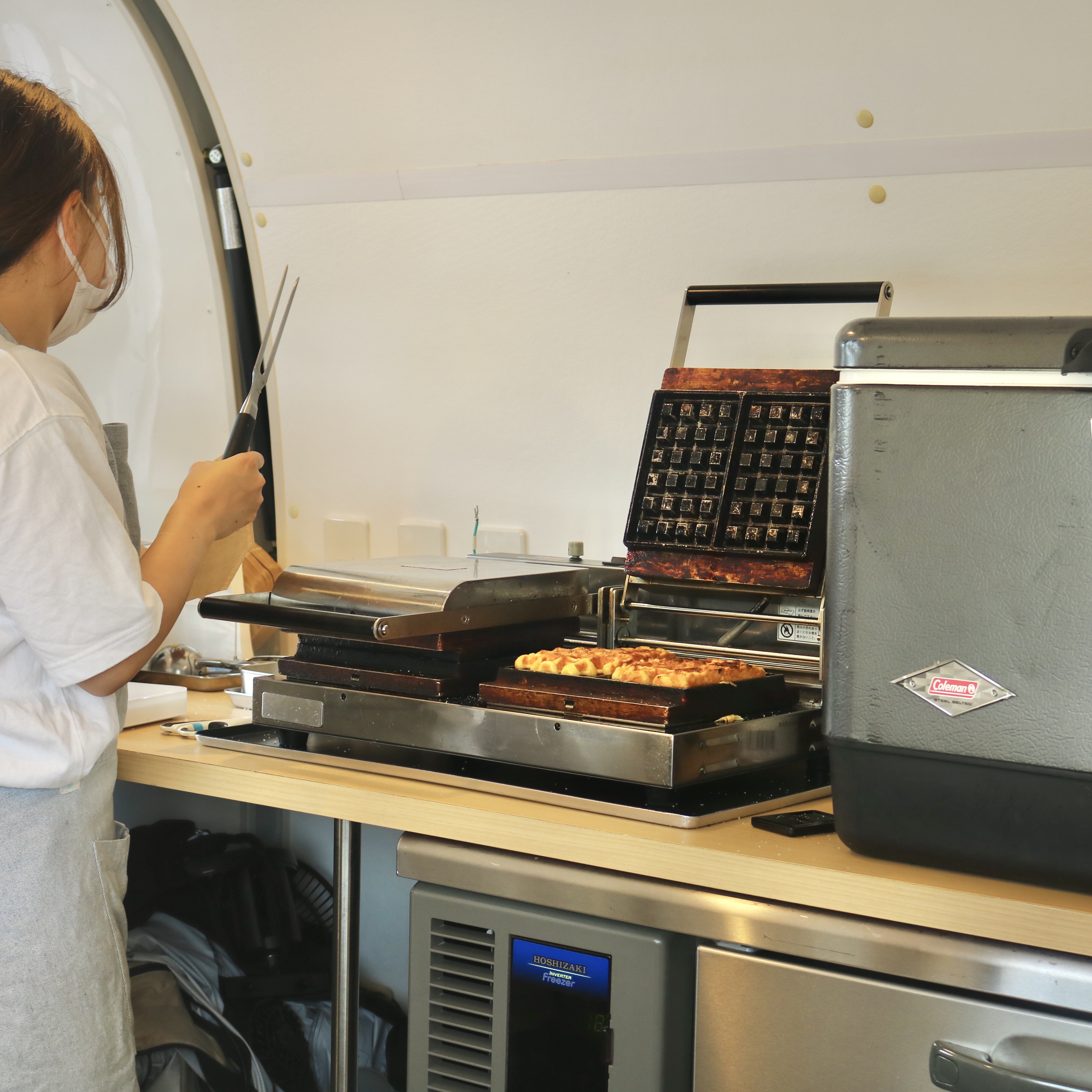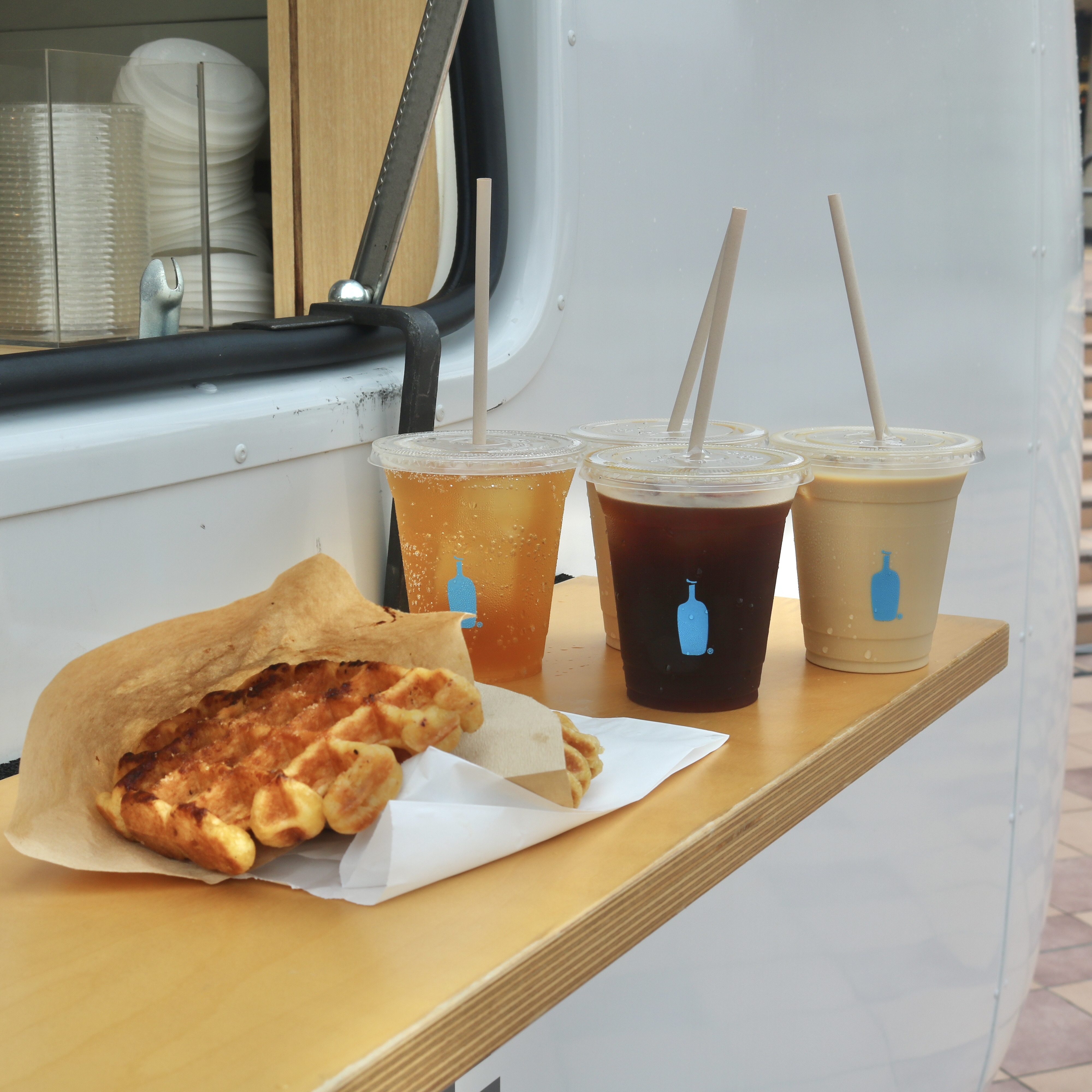 ブランドロゴを入れたクラシックなデザインの車体にエスプレッソマシンを搭載したこちらのコーヒートラックでは、カフェと同様にバリスタがラテアートを施したエスプレッソドリンクに加え、ご注文をいただいてから焼き上げて熱々な状態でご提供する、ブルーボトルコーヒーのアイコンメニューである「リエージュワッフル」が提供されました。