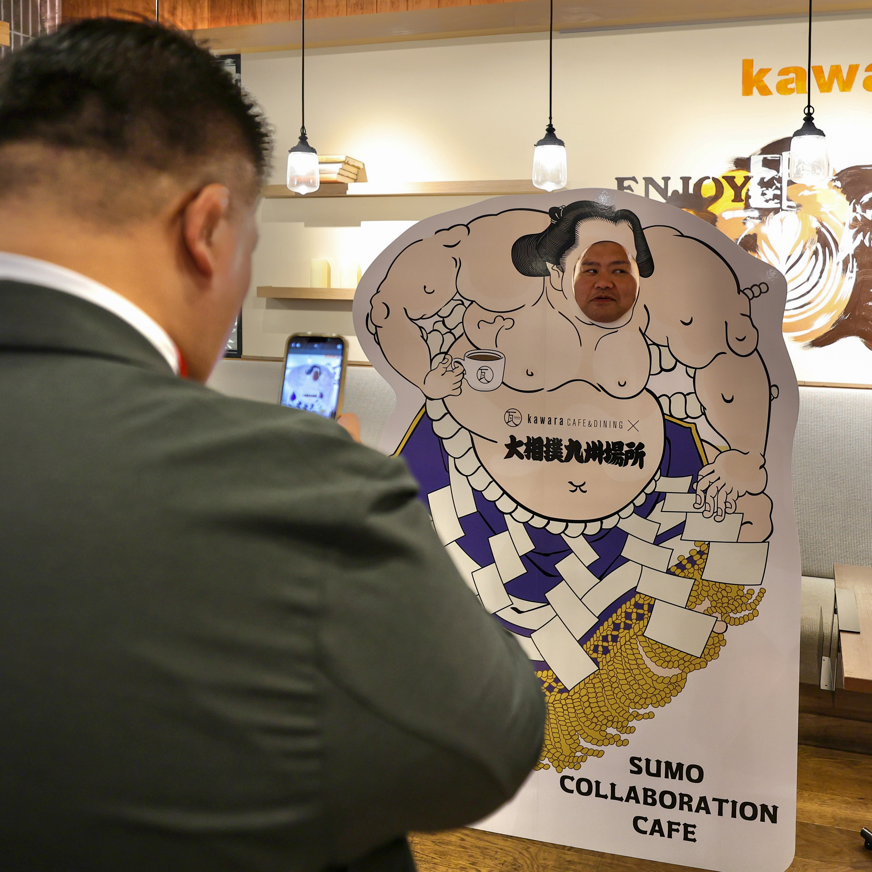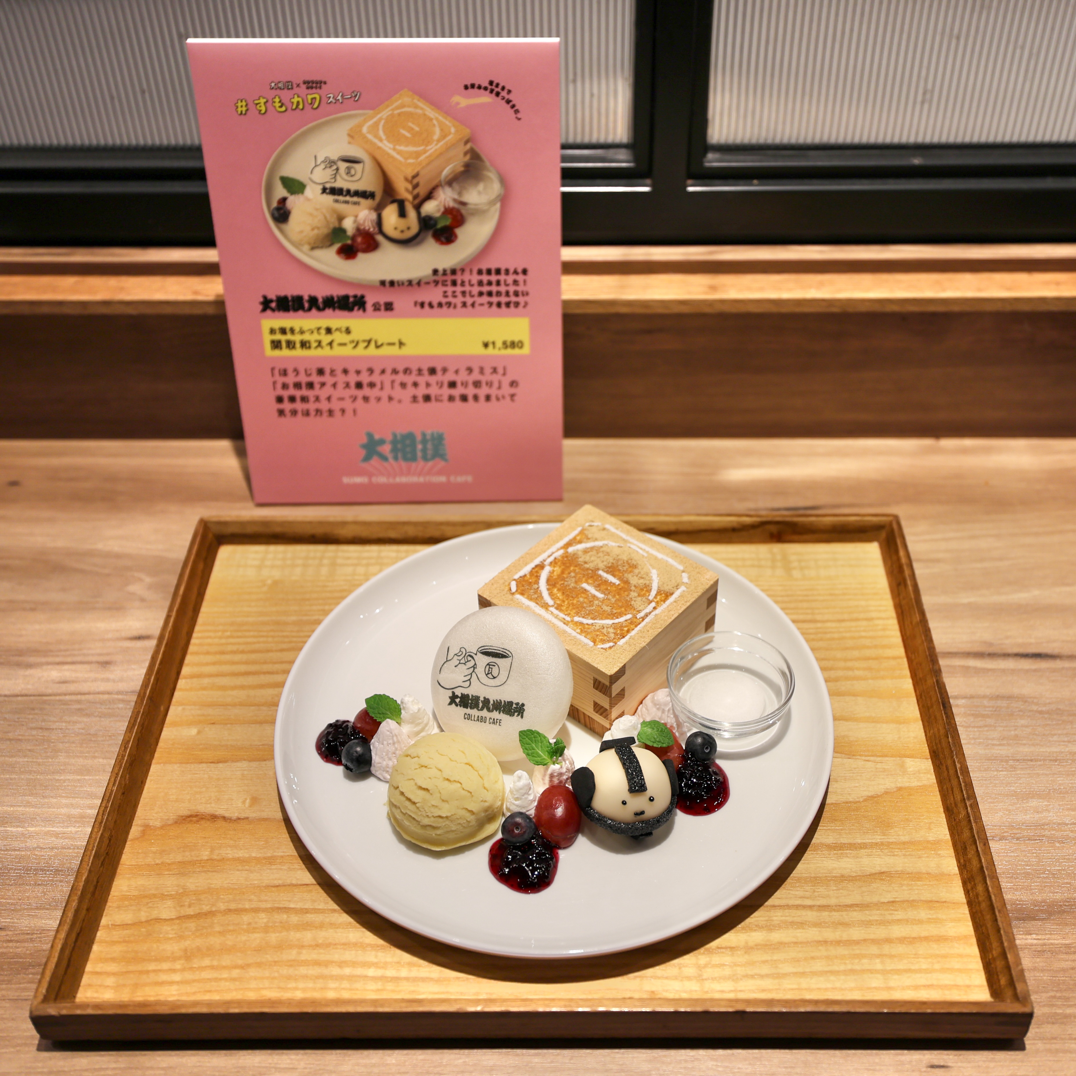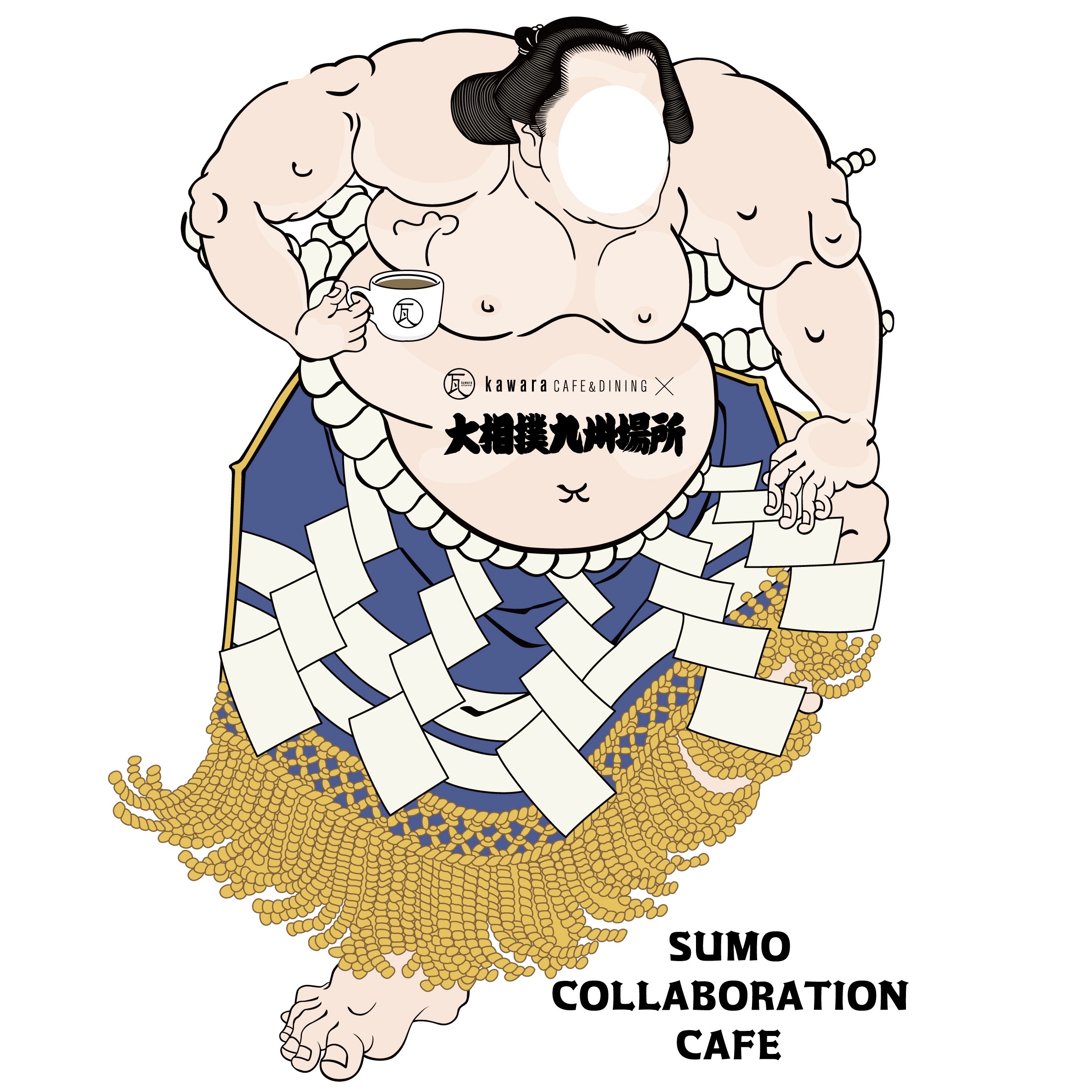 大相撲九州場所公認のちゃんこ鍋や“すもカワスイーツ”などが提供されるコラボカフェです。