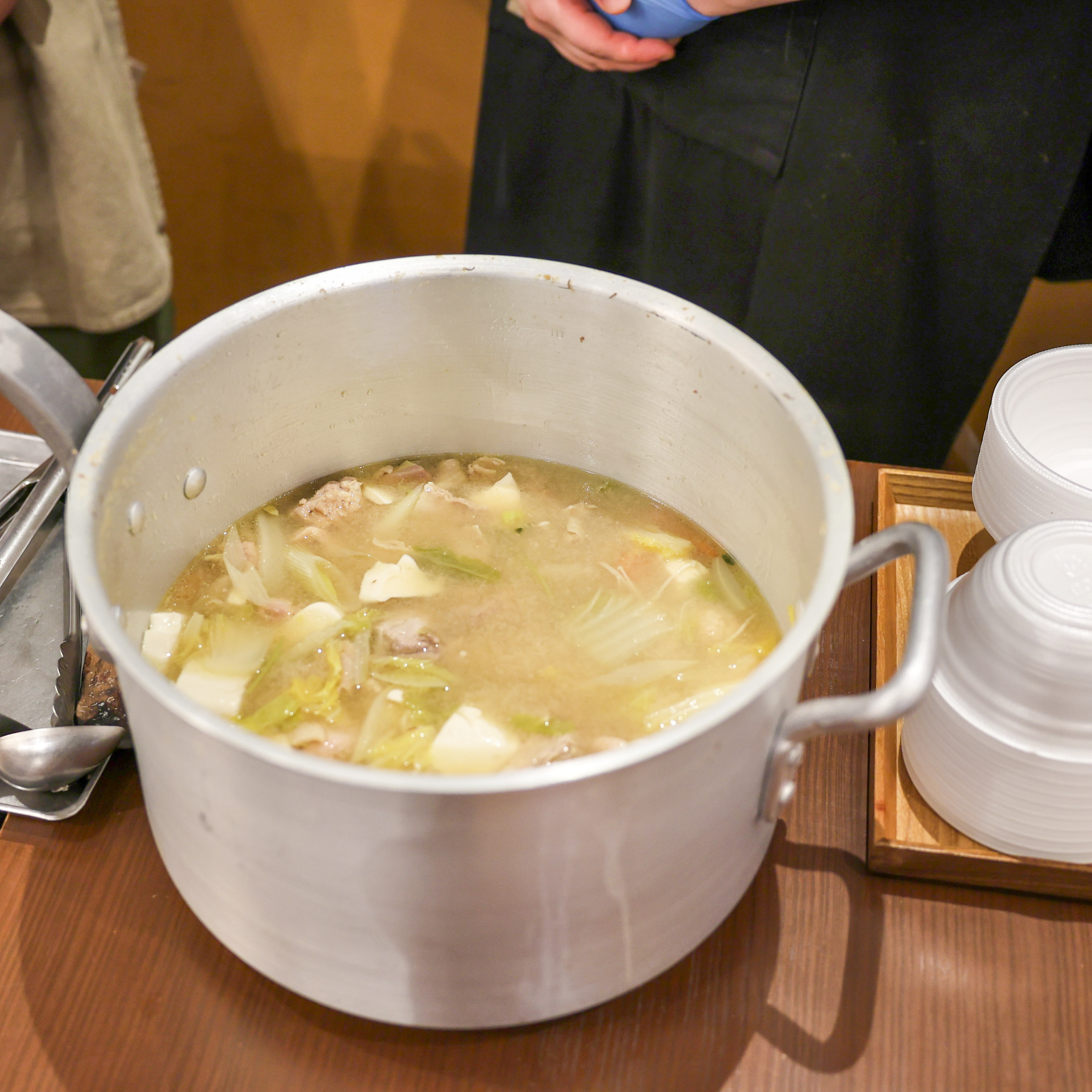 福岡産はかた一番どりとたっぷりお野菜の麦味噌バターちゃんこ鍋を、パーティー形式でいただきました。