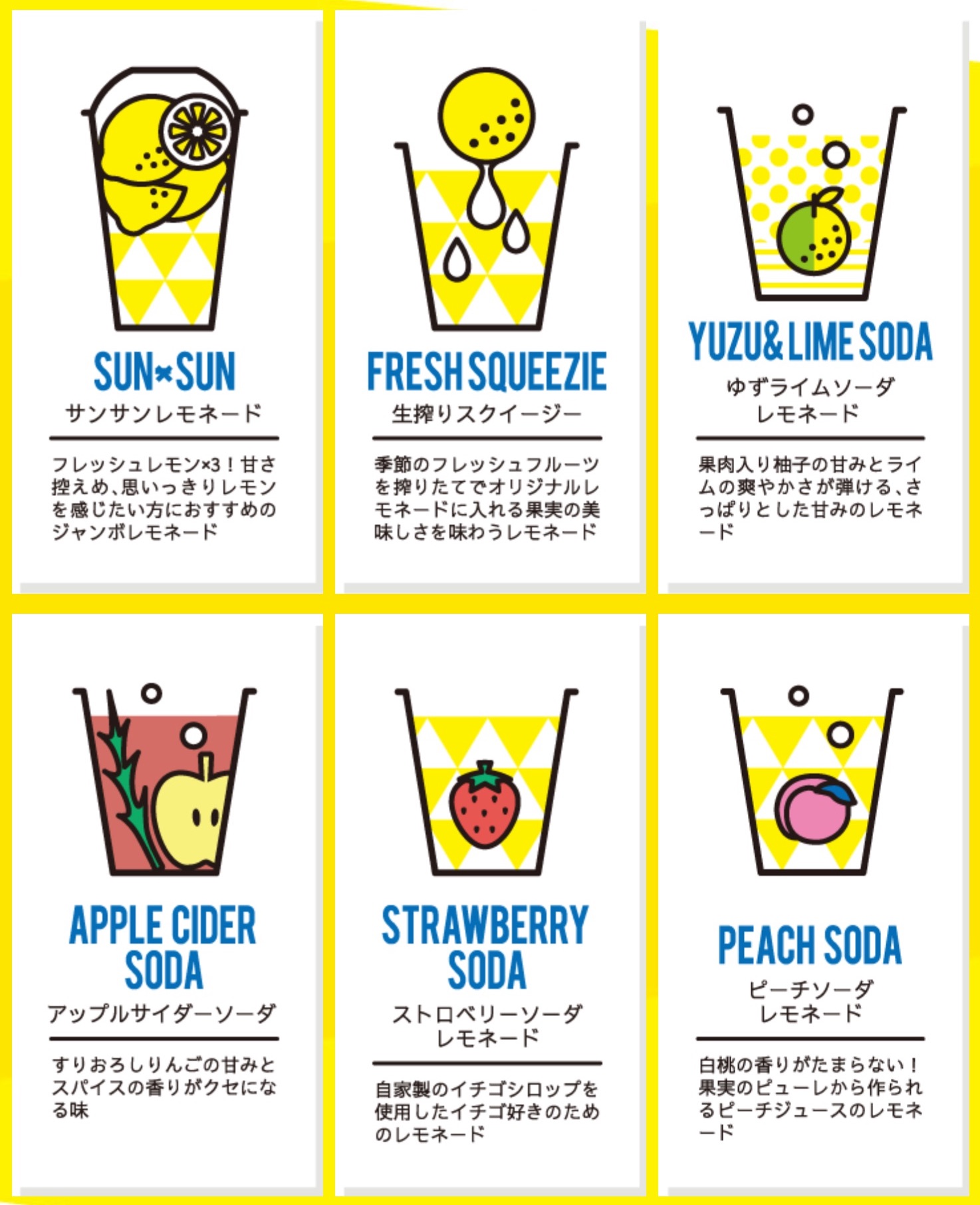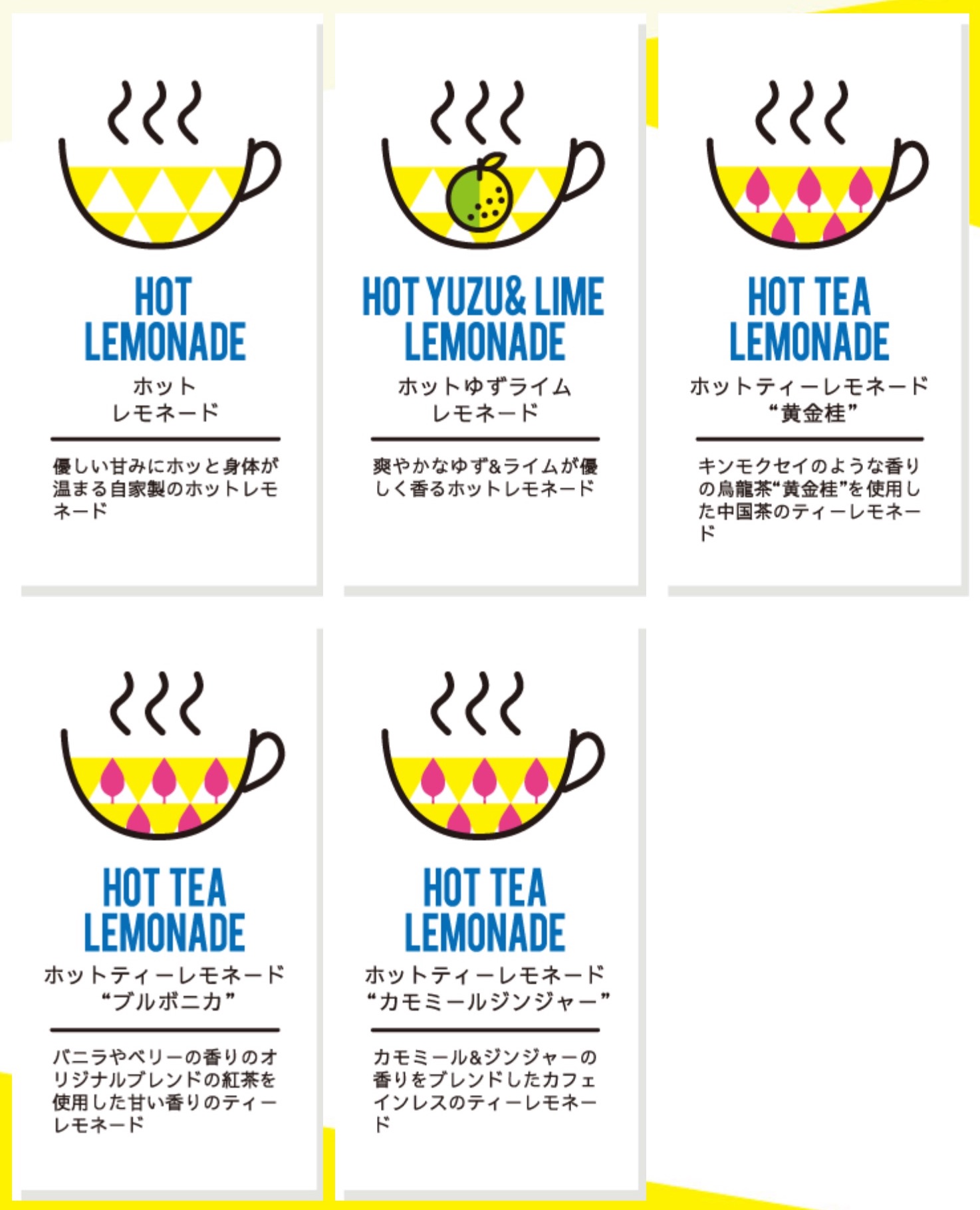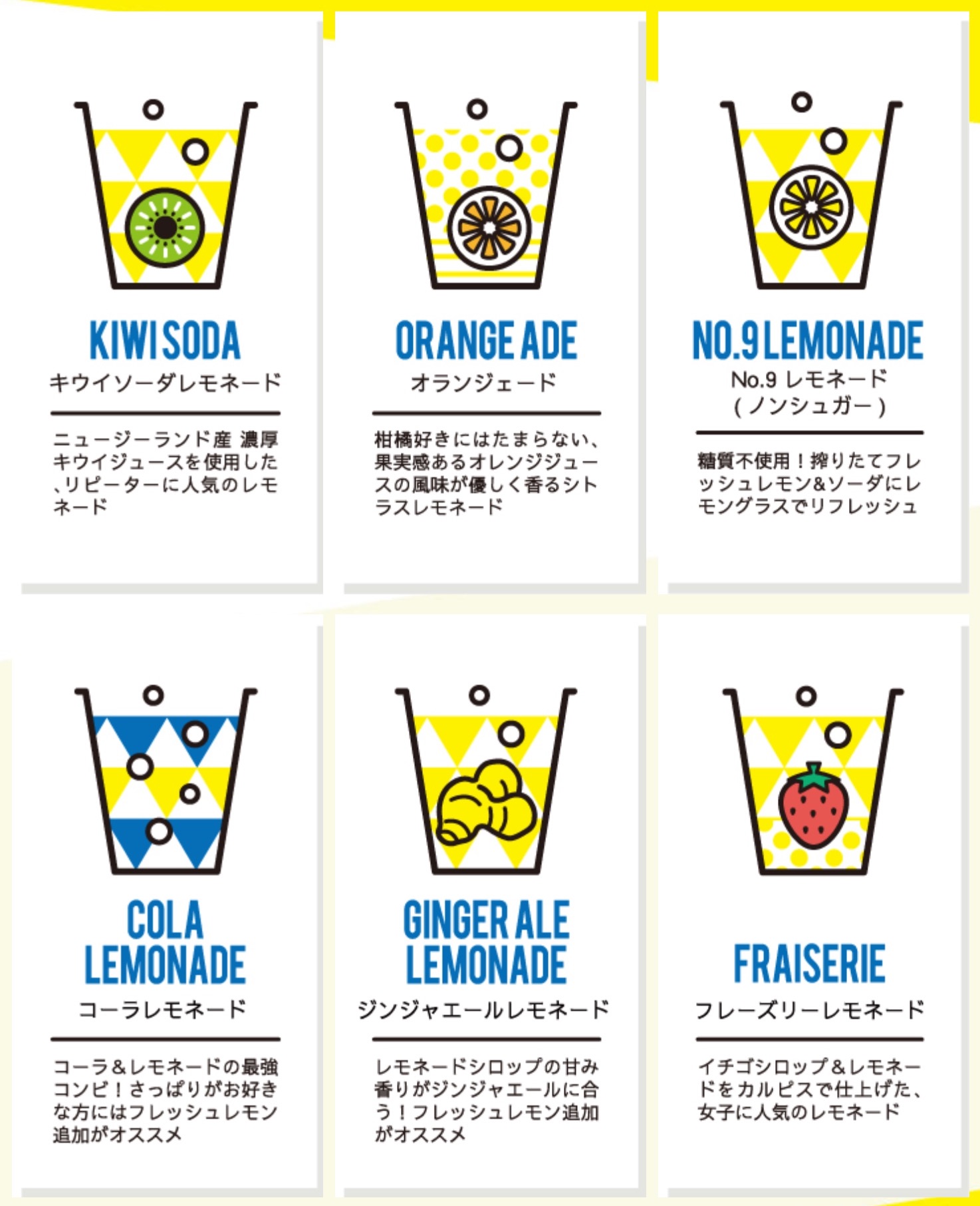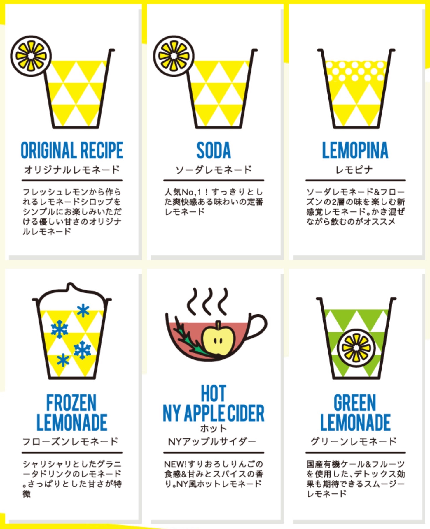 新鮮なレモンの果汁たっぷりのレモネードを一年中お楽しみいただけます。
