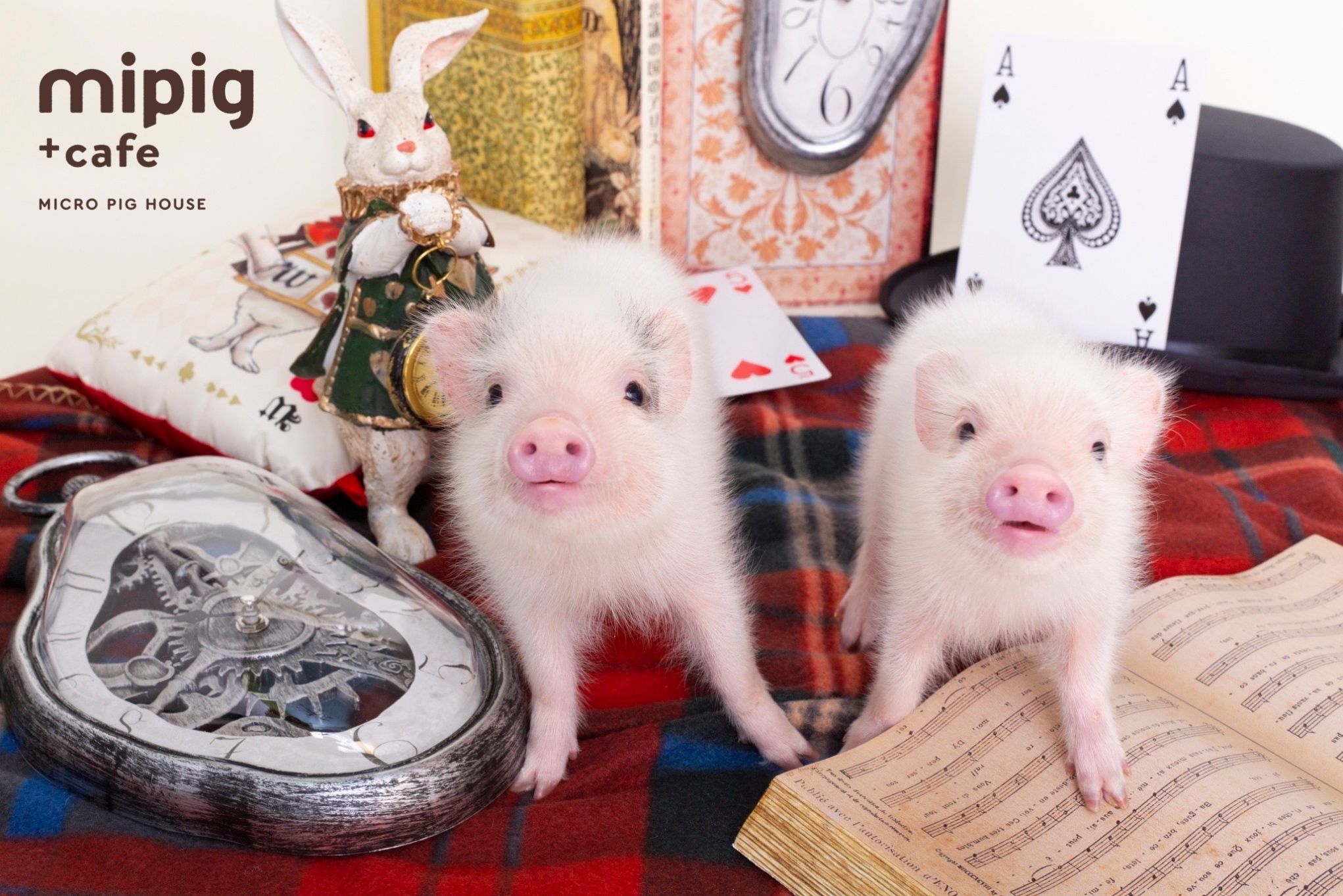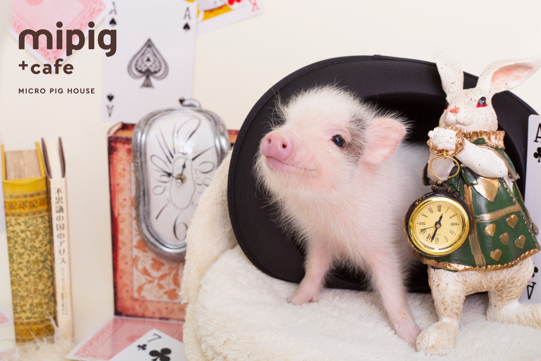 福岡店は「マイクロブタさんと不思議の国」というコンセプトを掲げ、絵本のような世界観の中で、マイクロブタさんとのひとときをお楽しみいただけます。
