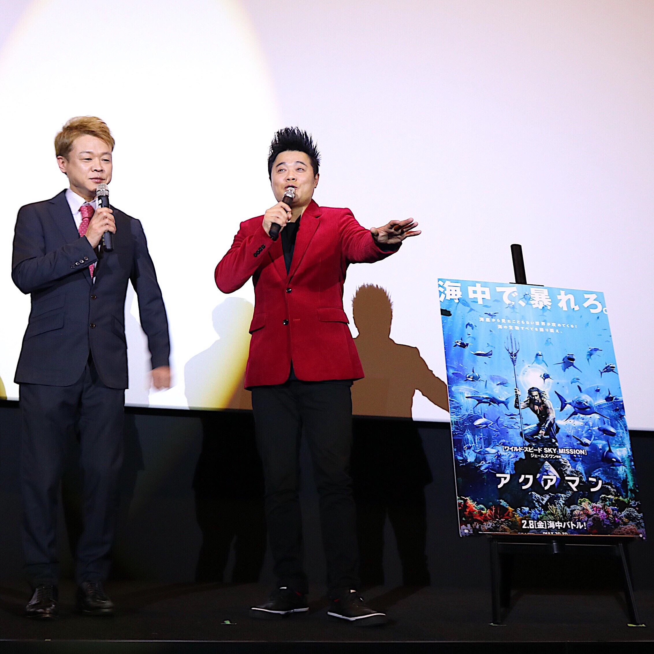 2019年1月29日(火)、福岡市博多区のT・ジョイ博多のドルビーシネマにて、映画「アクアマン」の試写会が開催され、福岡アンバサダーのバッドボーイズのお二人(清人さん・佐田正樹さん)が登場しました。