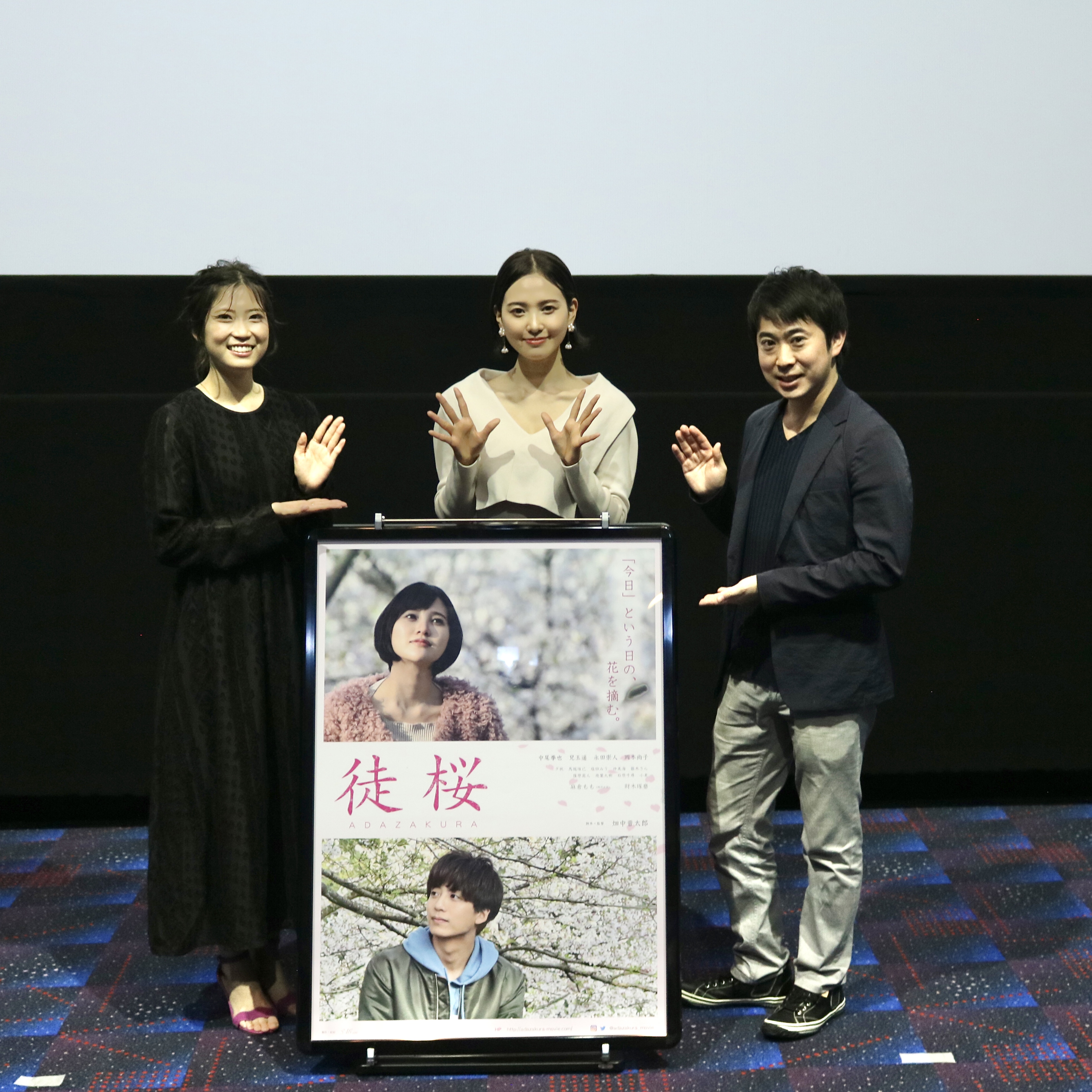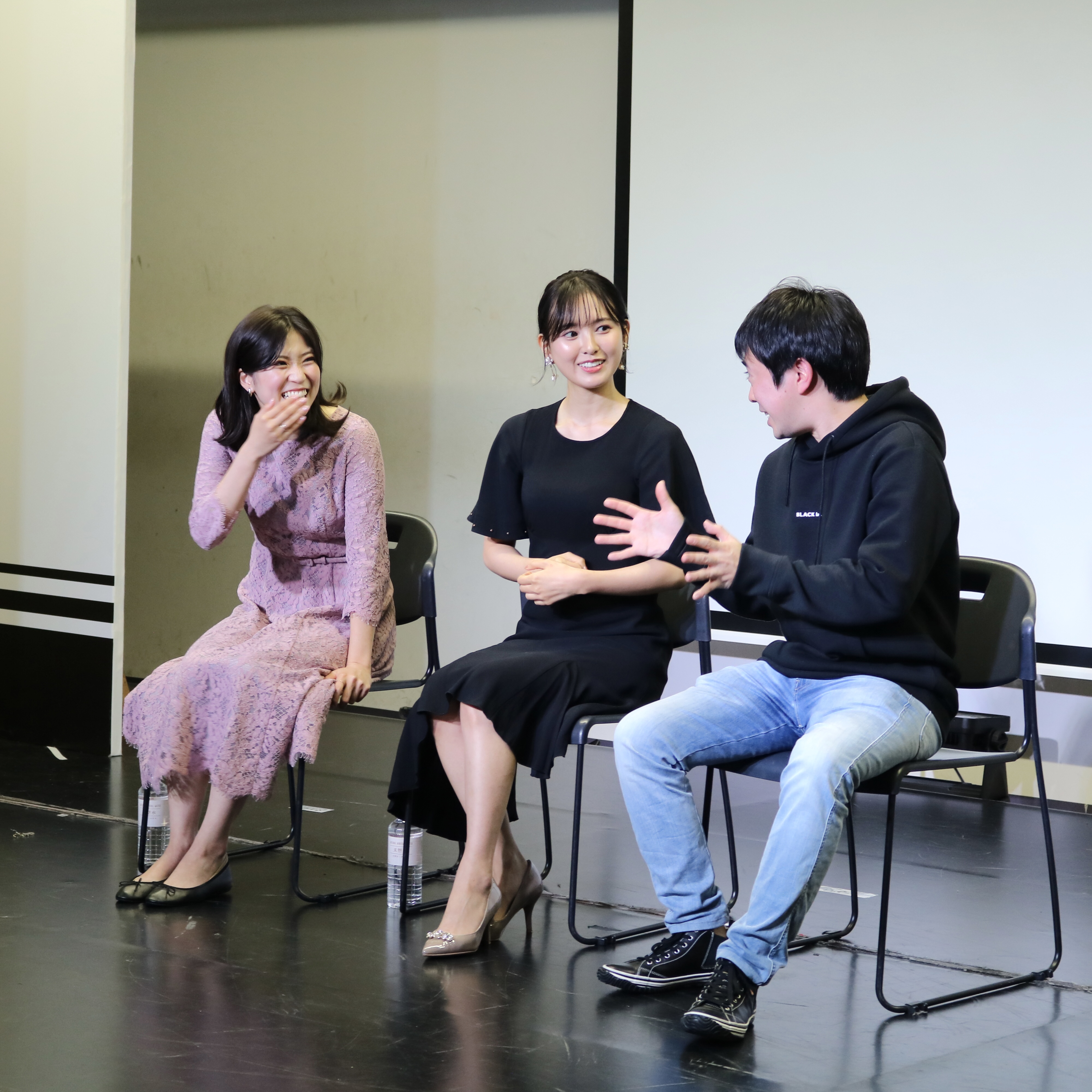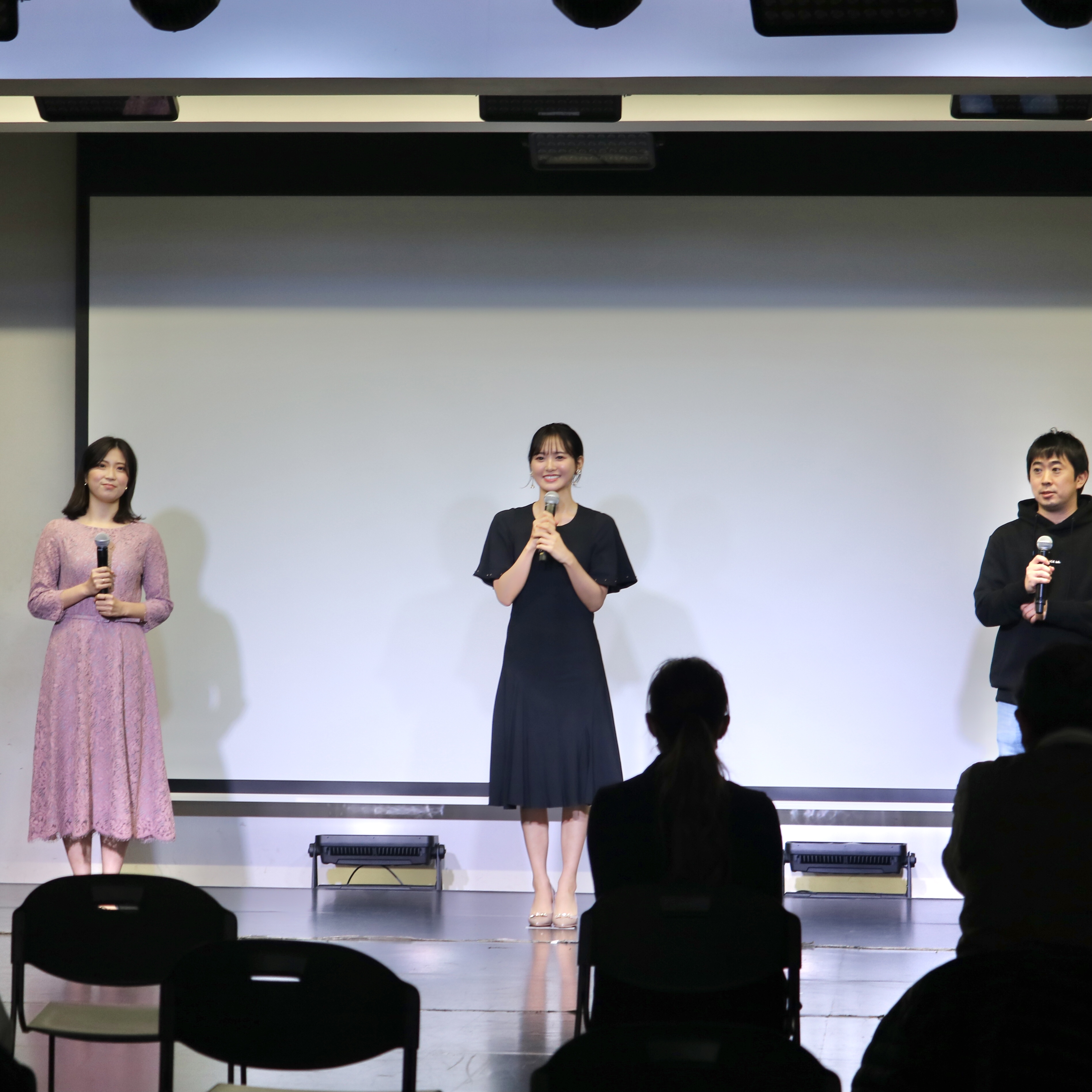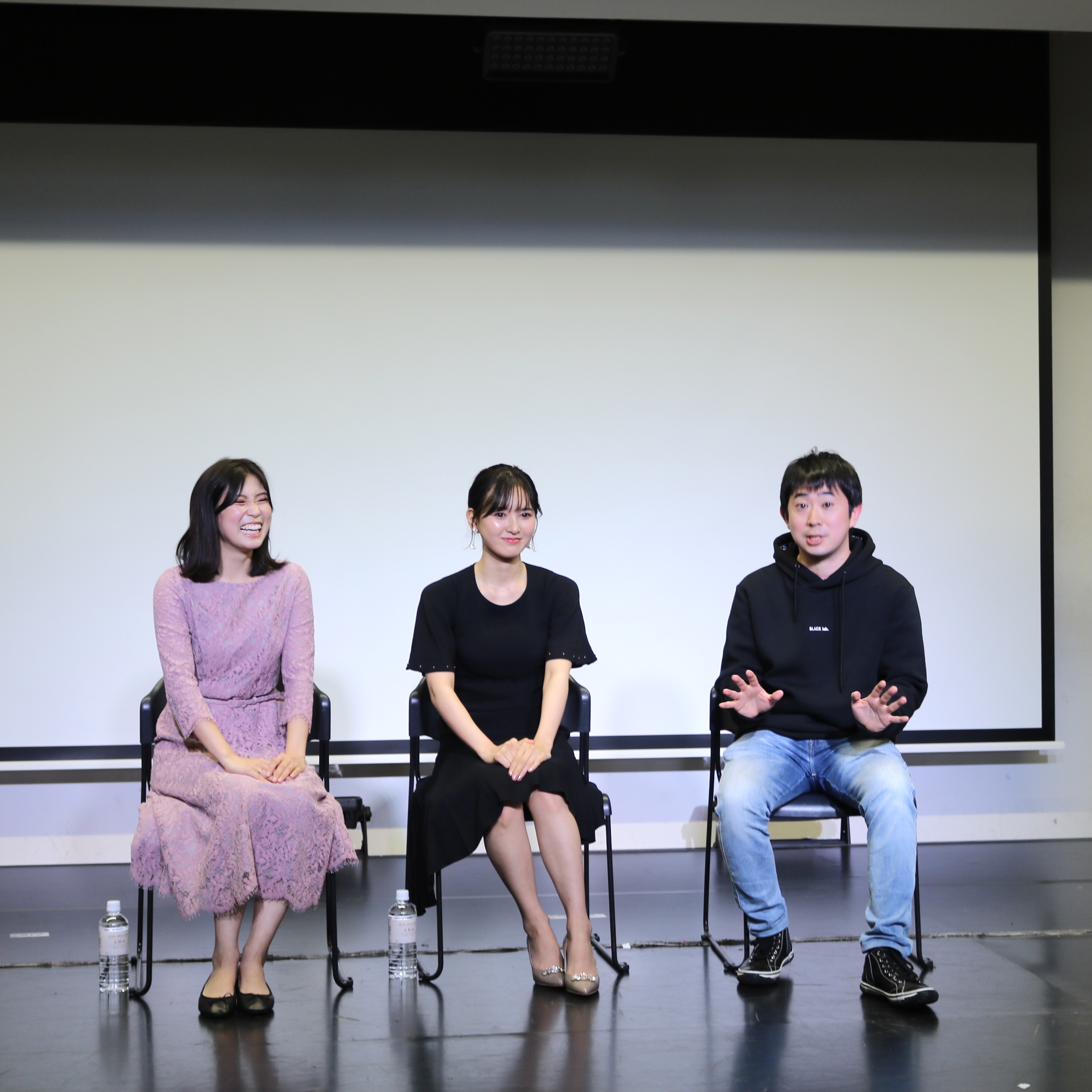 試写会終了後の、兒玉遥さん、塩田みうさん、畑中晋太郎監督による舞台挨拶。
