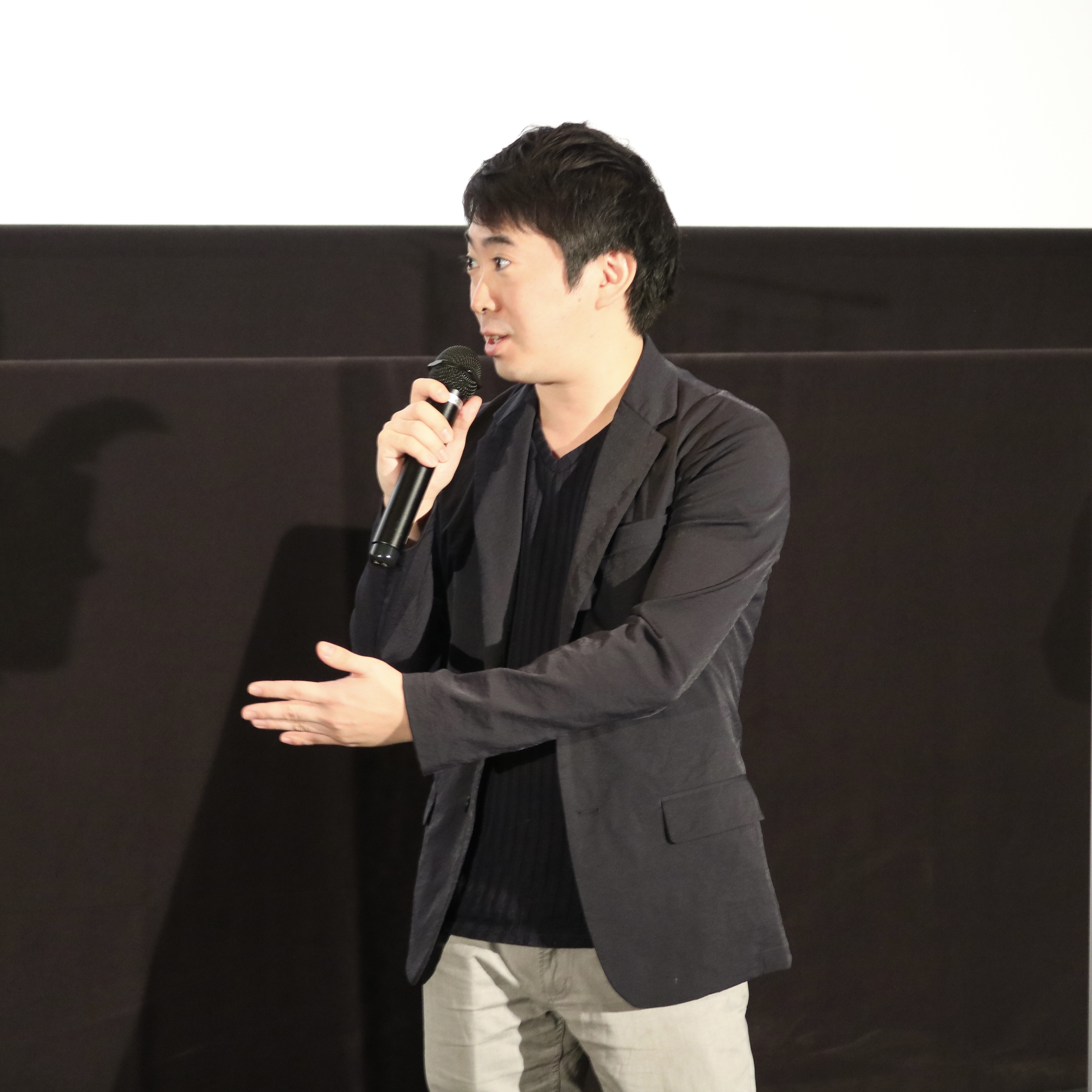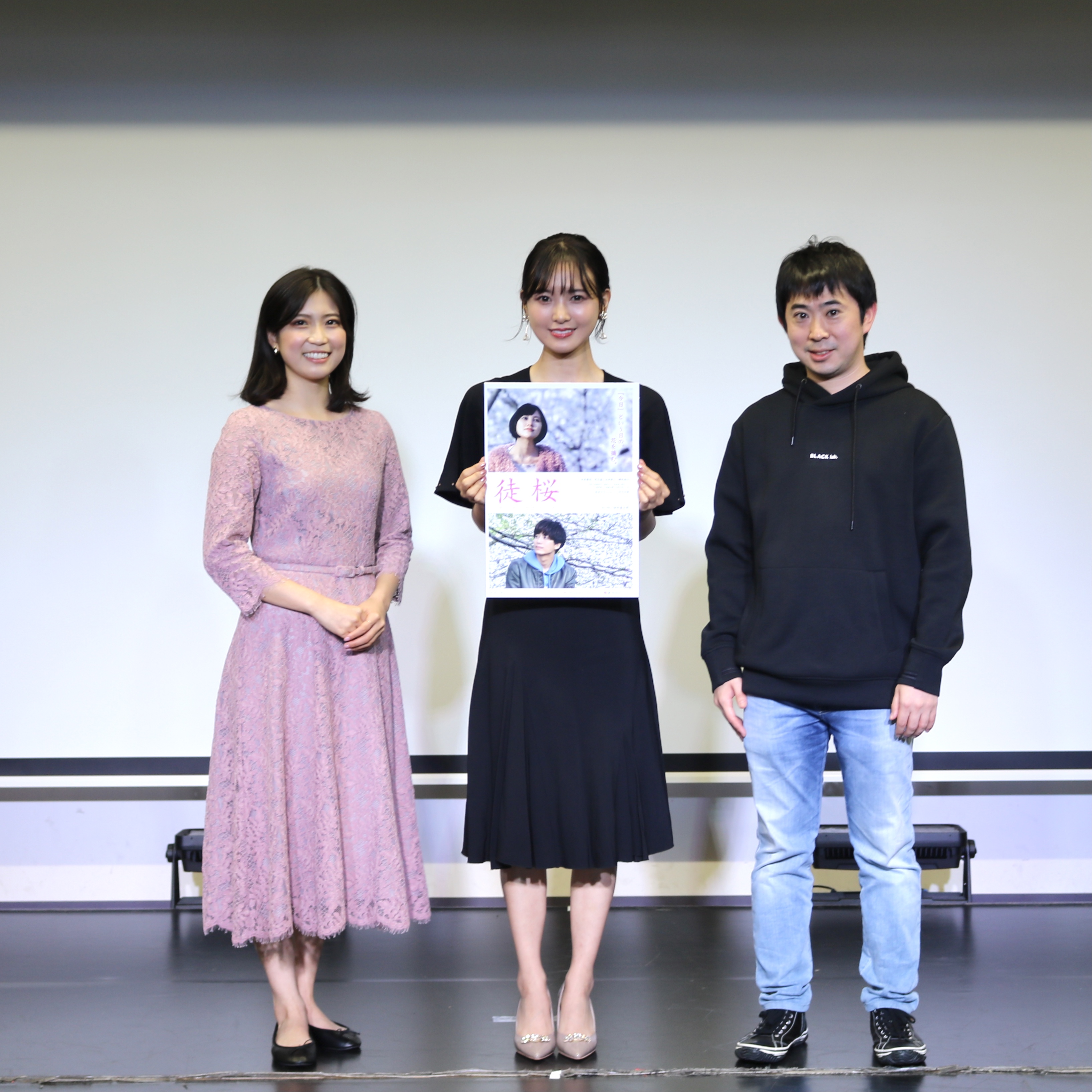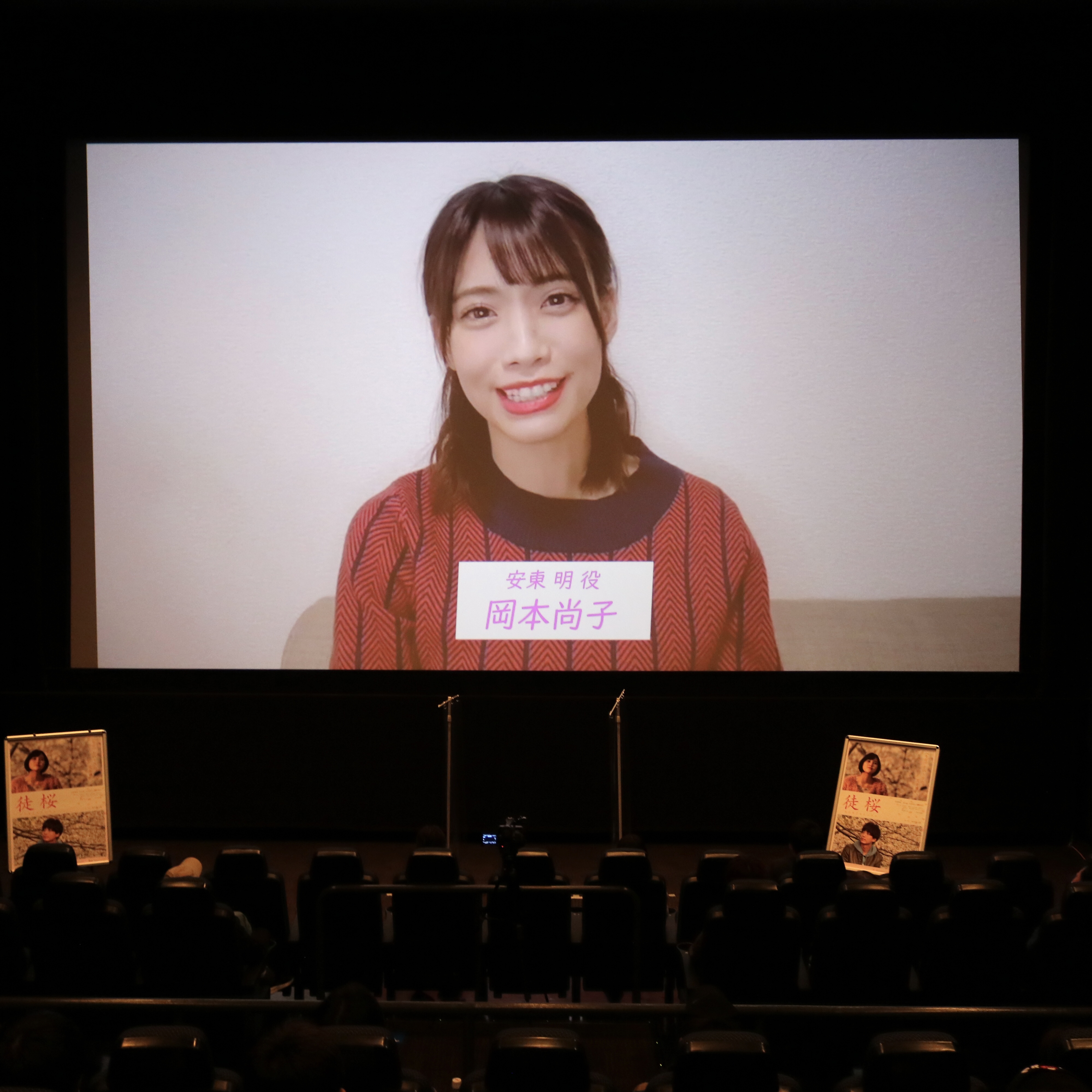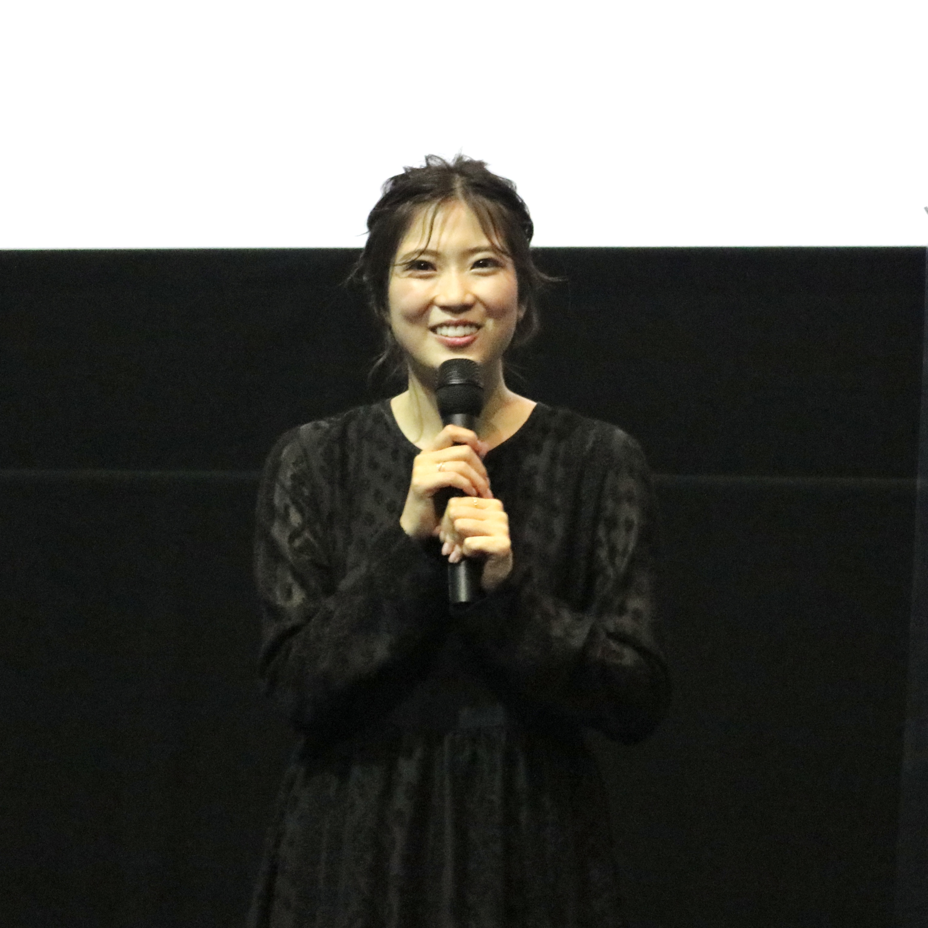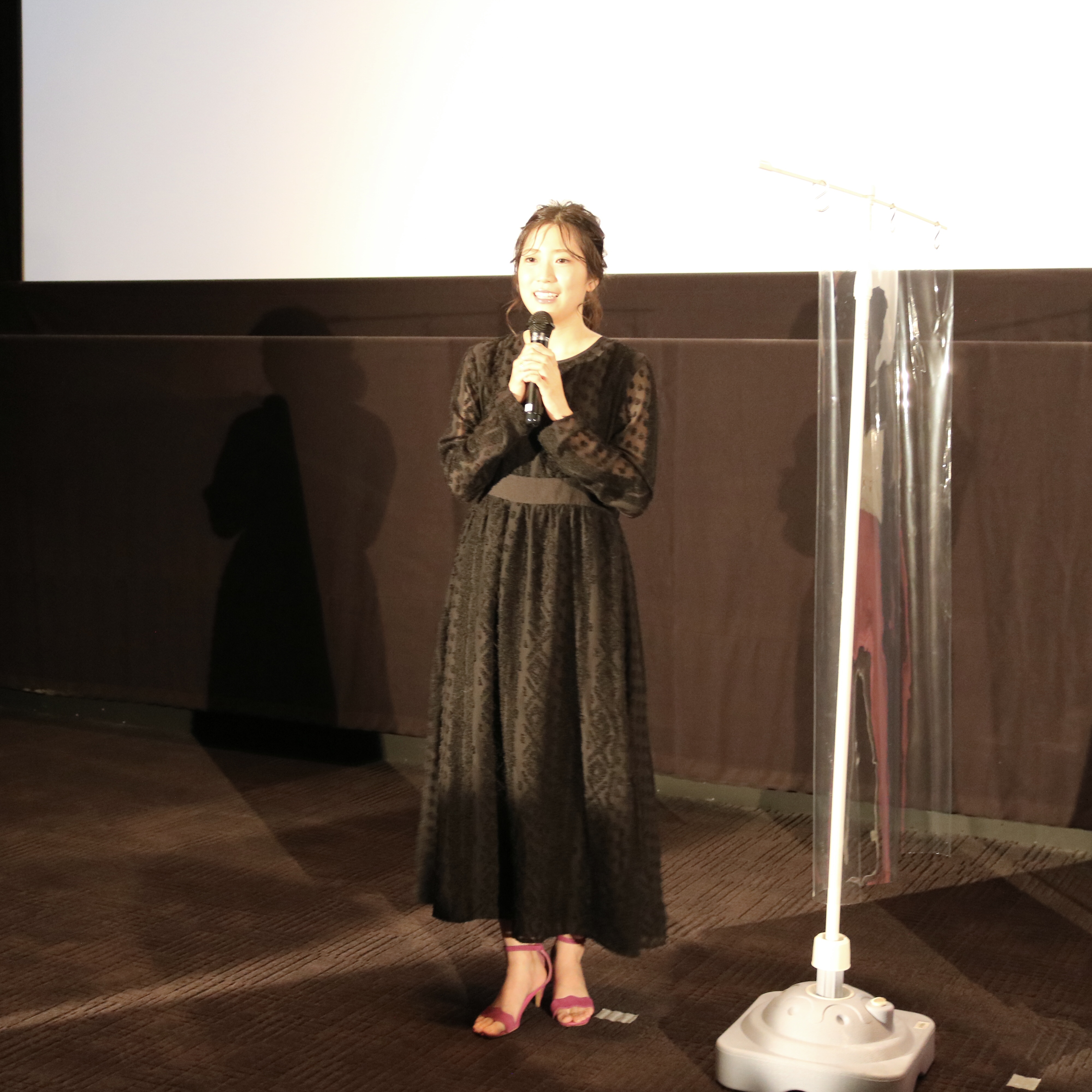 試写会終了後の、兒玉遥さん、塩田みうさん、畑中晋太郎監督による舞台挨拶。