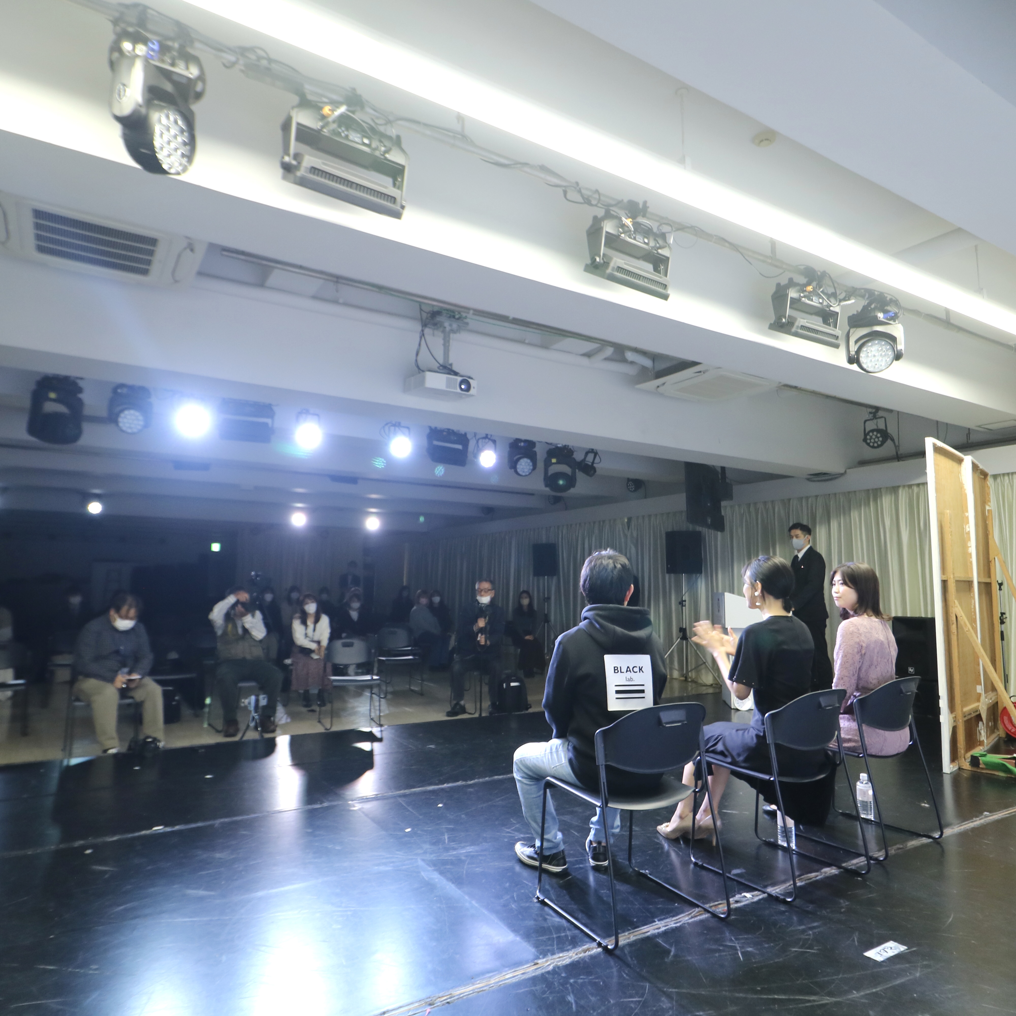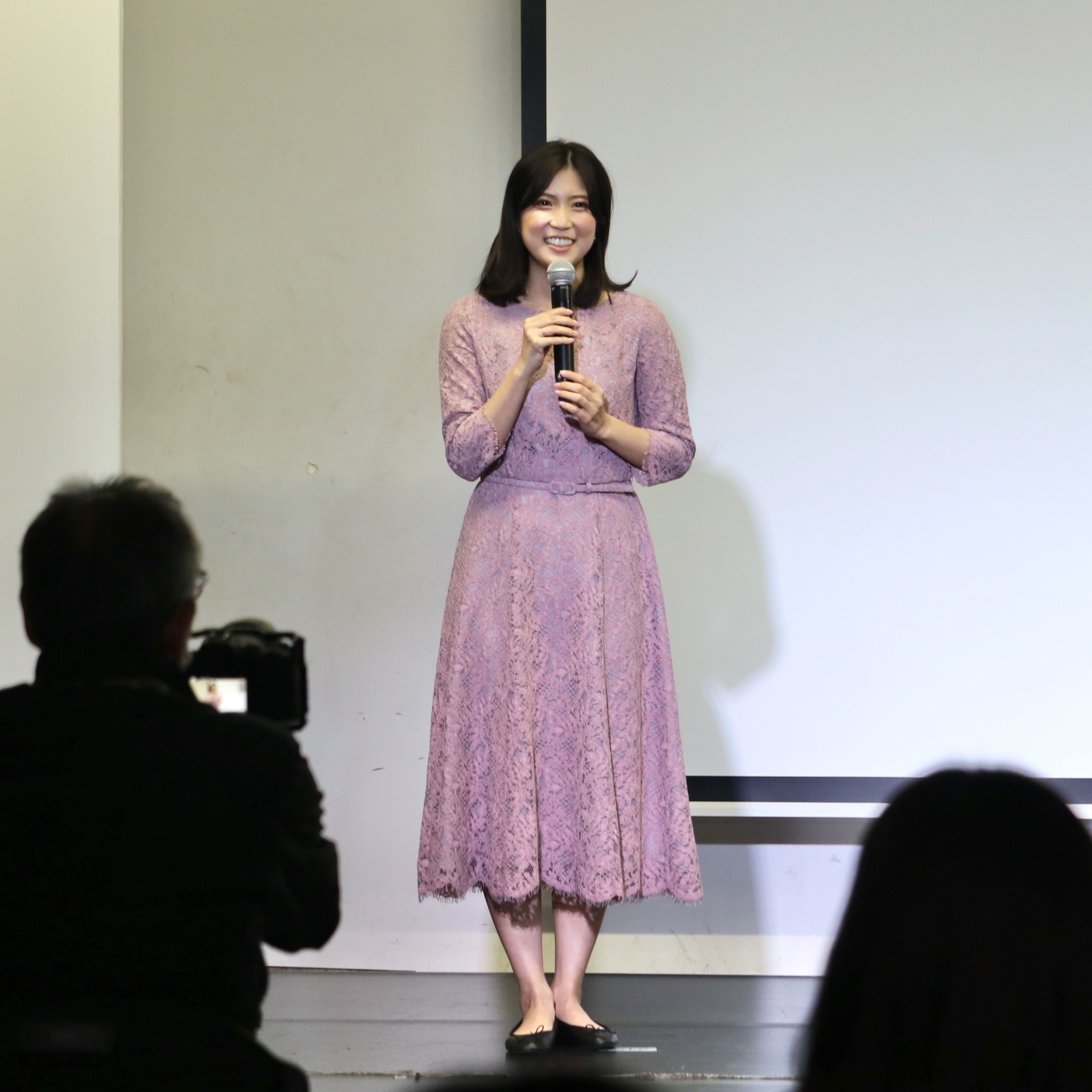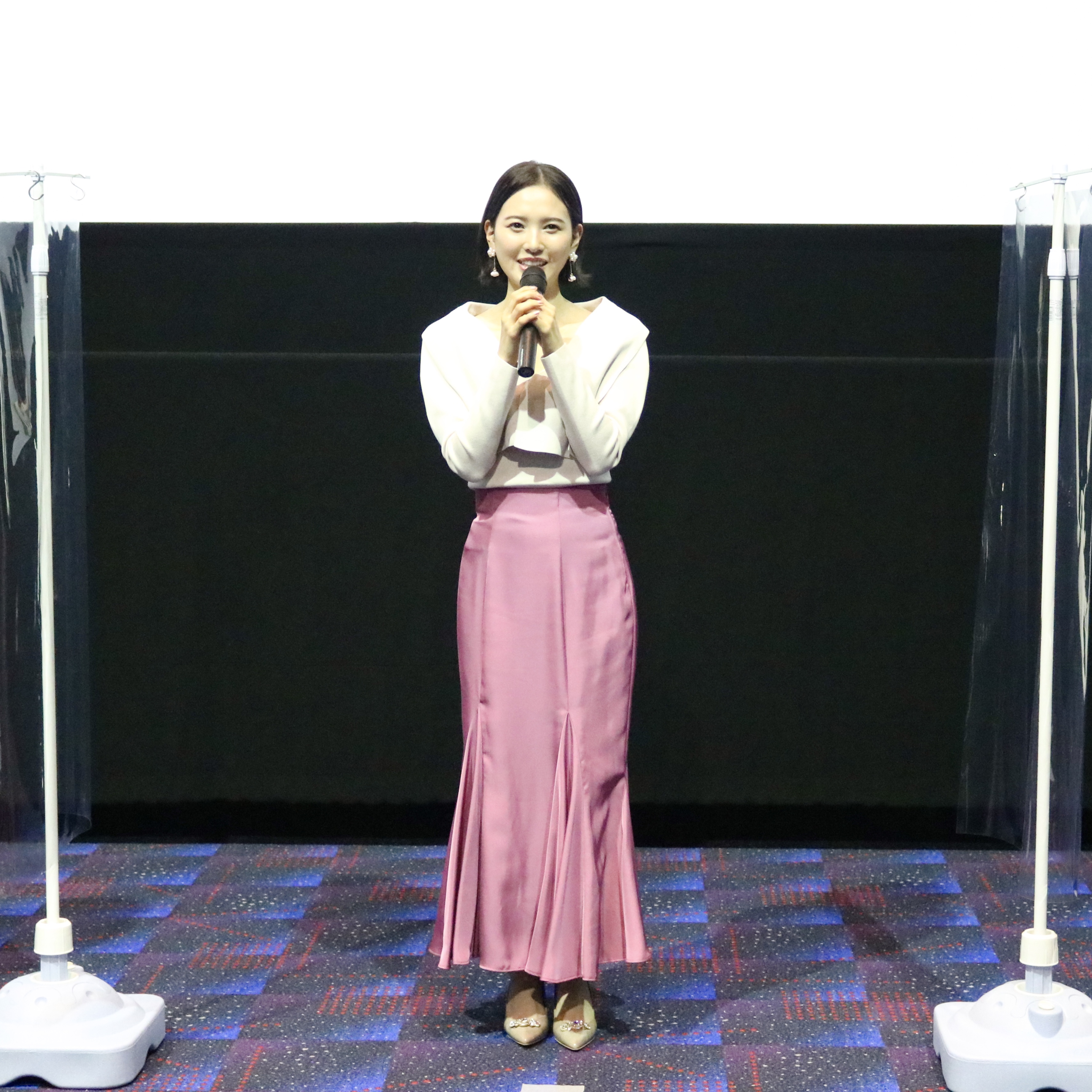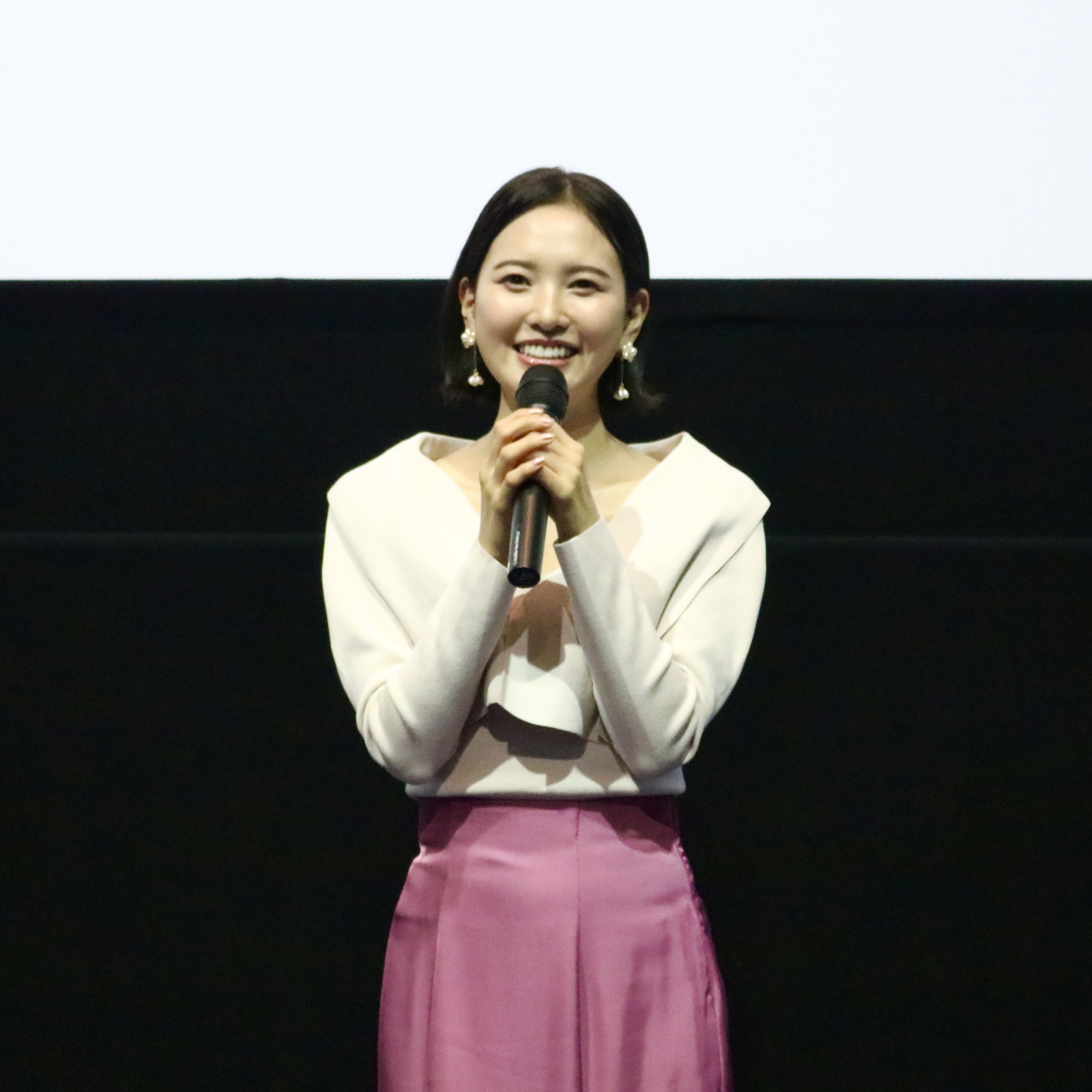 試写会終了後の、兒玉遥さん、塩田みうさん、畑中晋太郎監督による舞台挨拶。