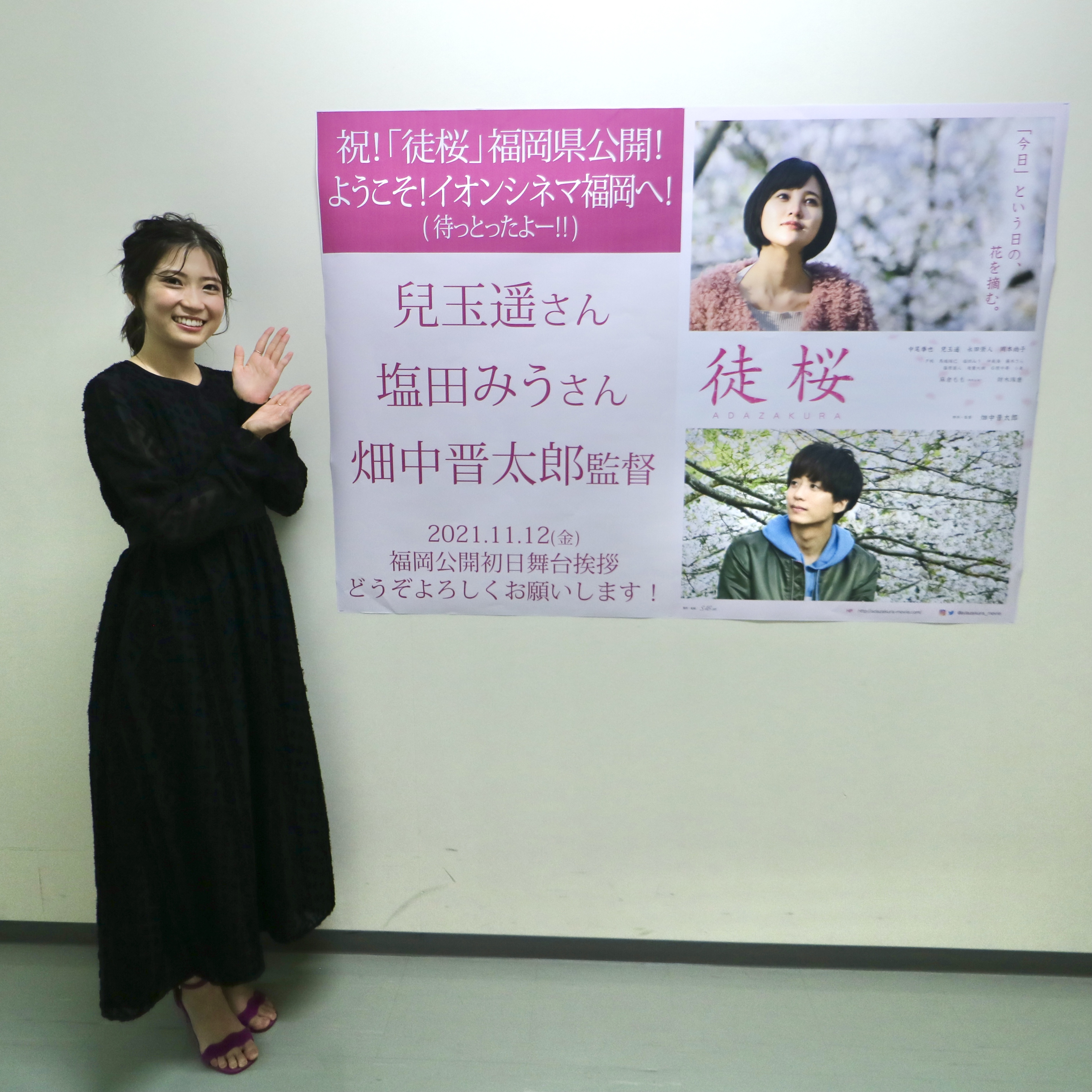2021年11月11日(木)と12日(金)、映画「徒桜(あだざくら)」の福岡での公開を記念して、11日(木)に福岡ベルエポック美容専門学校で完成試写会が、12日(金)にイオンシネマ筑紫野とイオンシネマ福岡で舞台挨拶が開催されました。