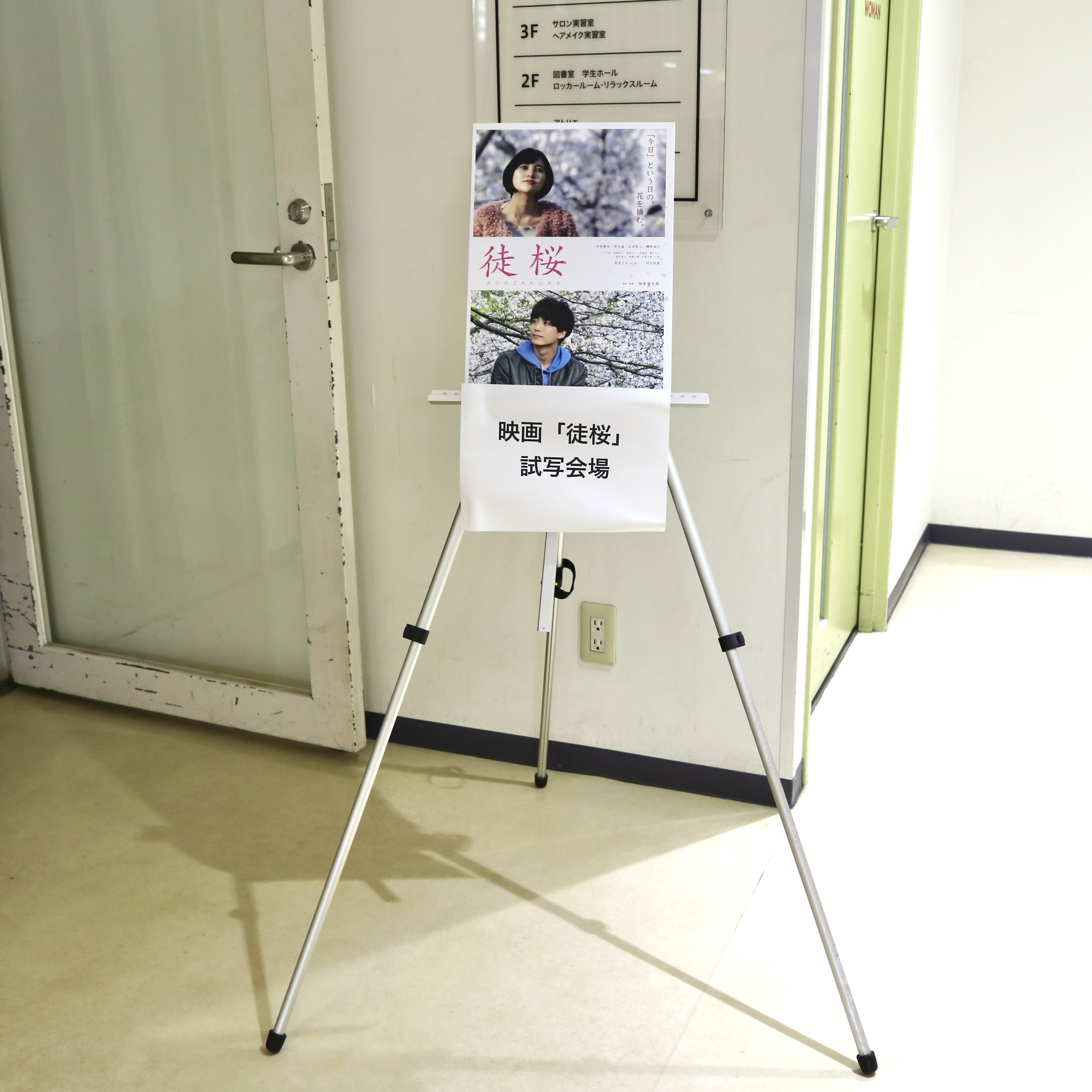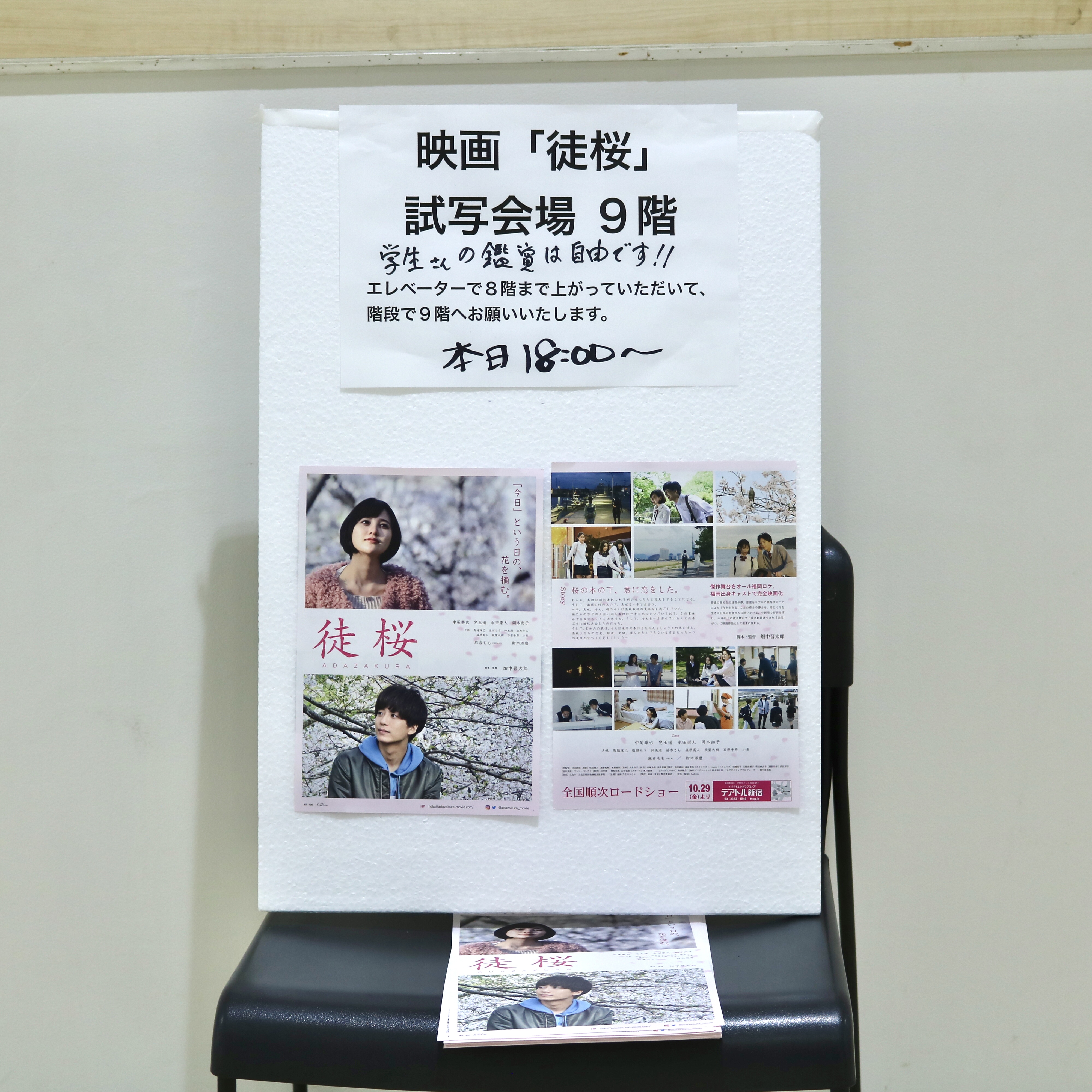 試写会場への案内。