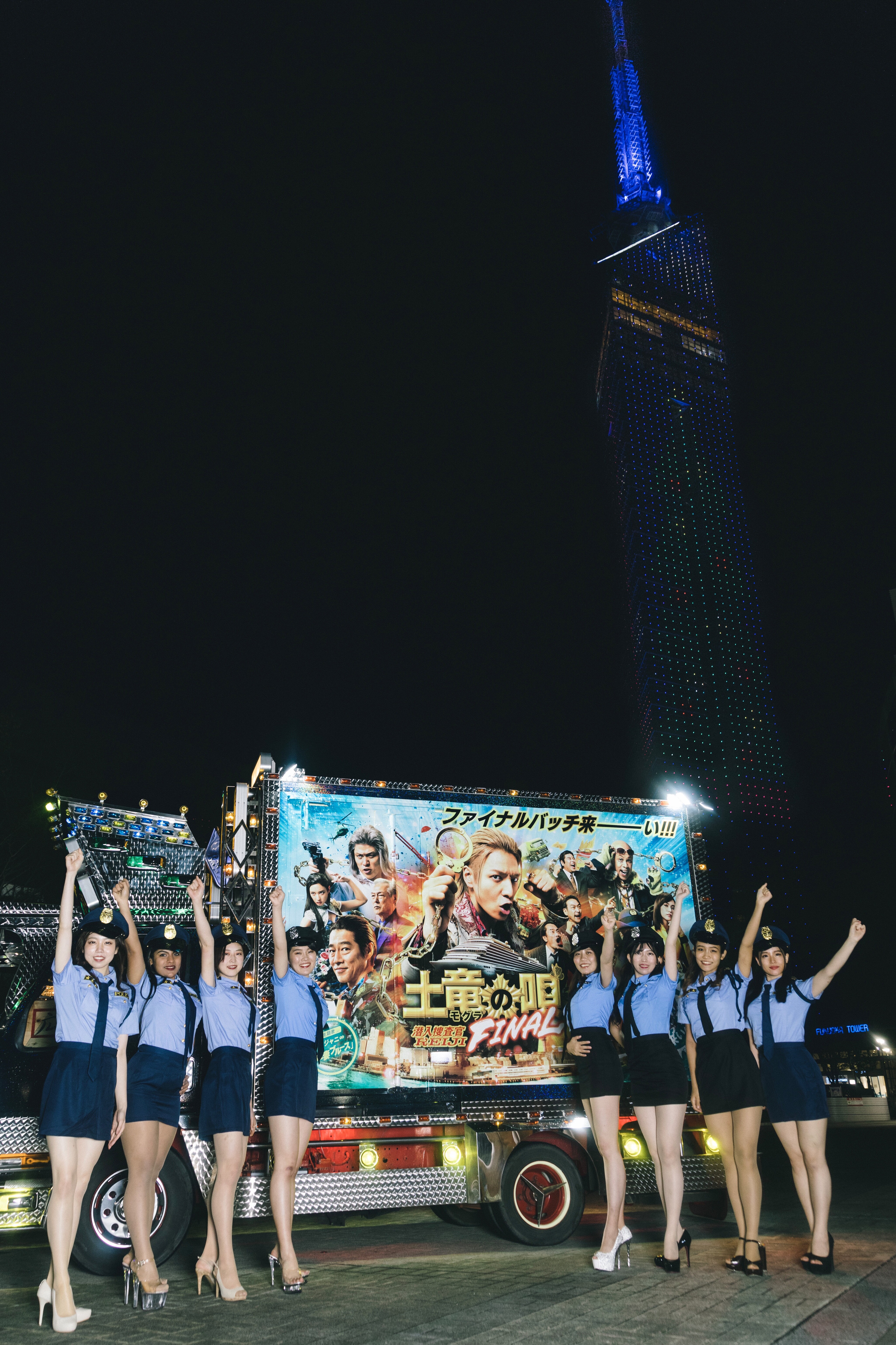 土竜のデコトラの出発式は、11月12日(金)に福岡タワーで行われました。