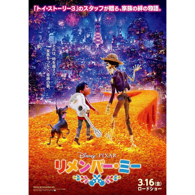 『トイ・ストーリー』『モンスターズ・インク』のディズニー/ピクサー最新作は、誰も観たことがない明るくカラフルな“死者の国”を舞台に、時を越えた“家族のつながり”を描いた感動のファンタジー・アドベンチャー──『リメンバー・ミー』。