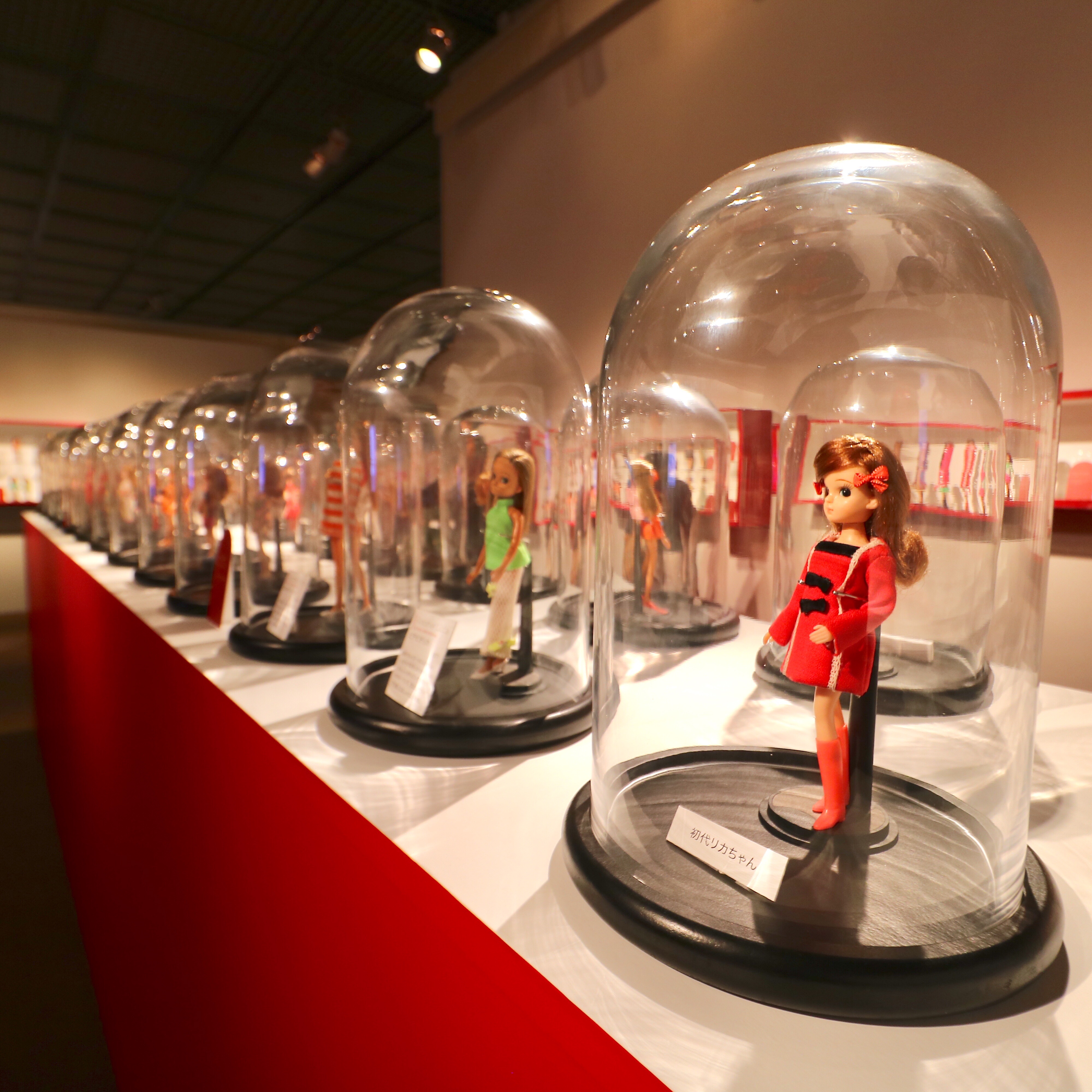 歴代のリカちゃんやその家族・友達の約580体や、誕生にまつわる開発ノートや歴代のリカちゃんハウスなど貴重な資料を約70点のほか、有名ブランドや著名人50組が50周年をお祝いするコラボリカちゃんも特別展示しています。
