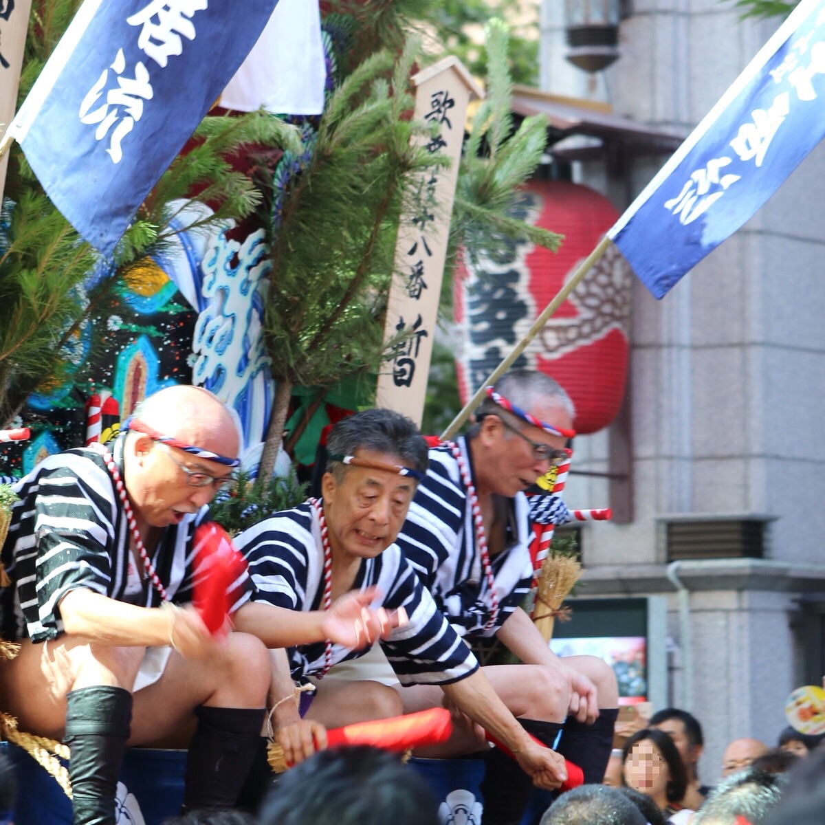 この日に限り、知名士が台上がりを務め、棒さばき役の各流総務ともども舁き手を叱咤激励します。