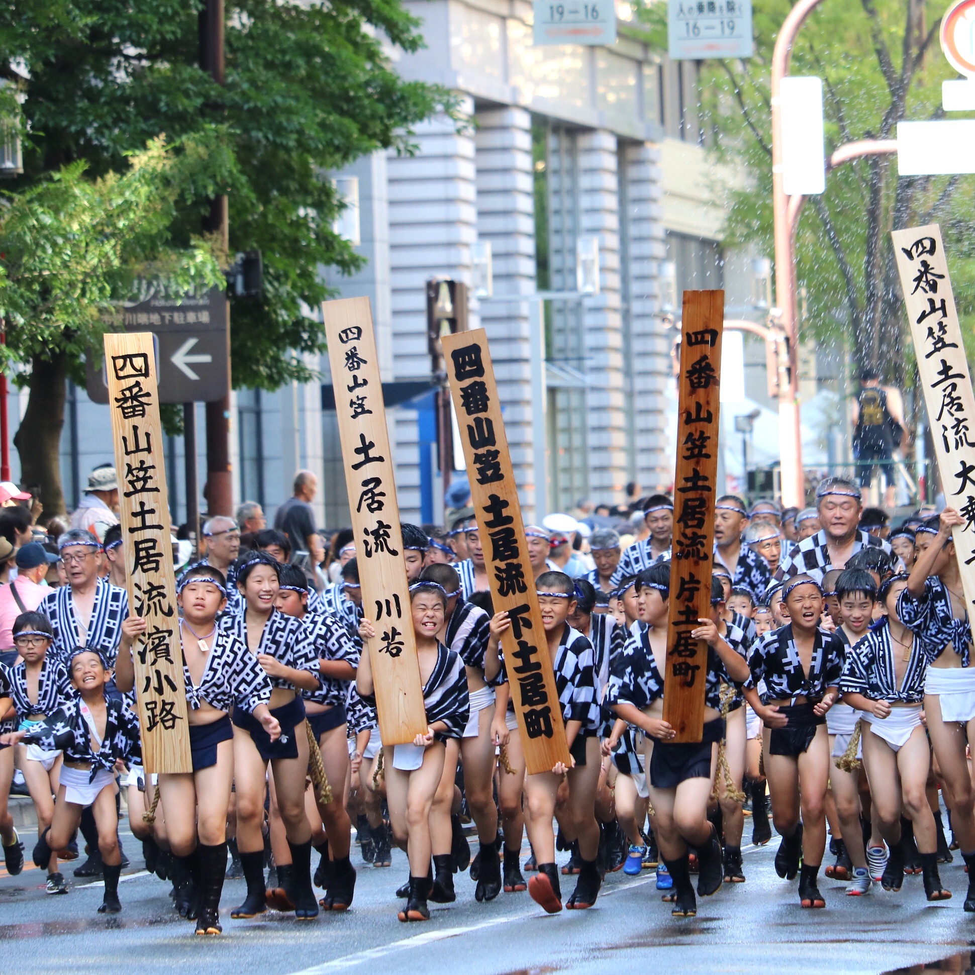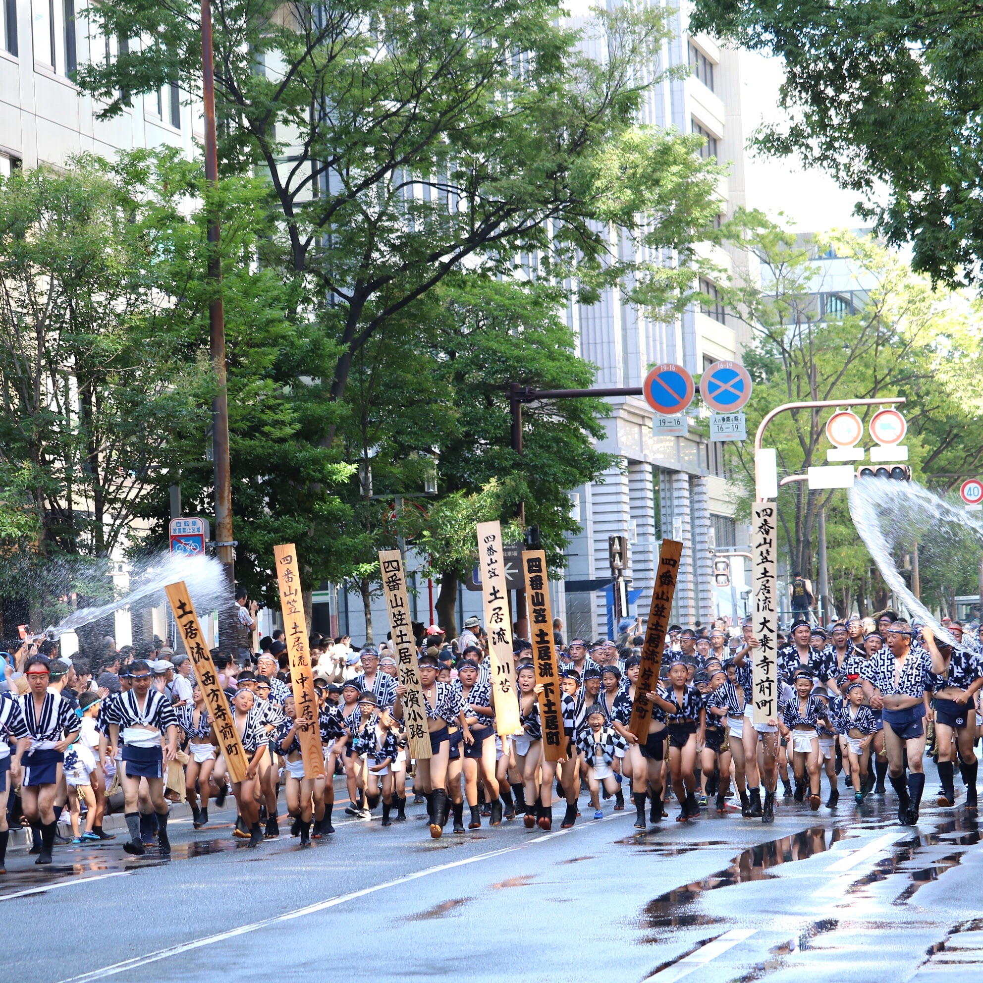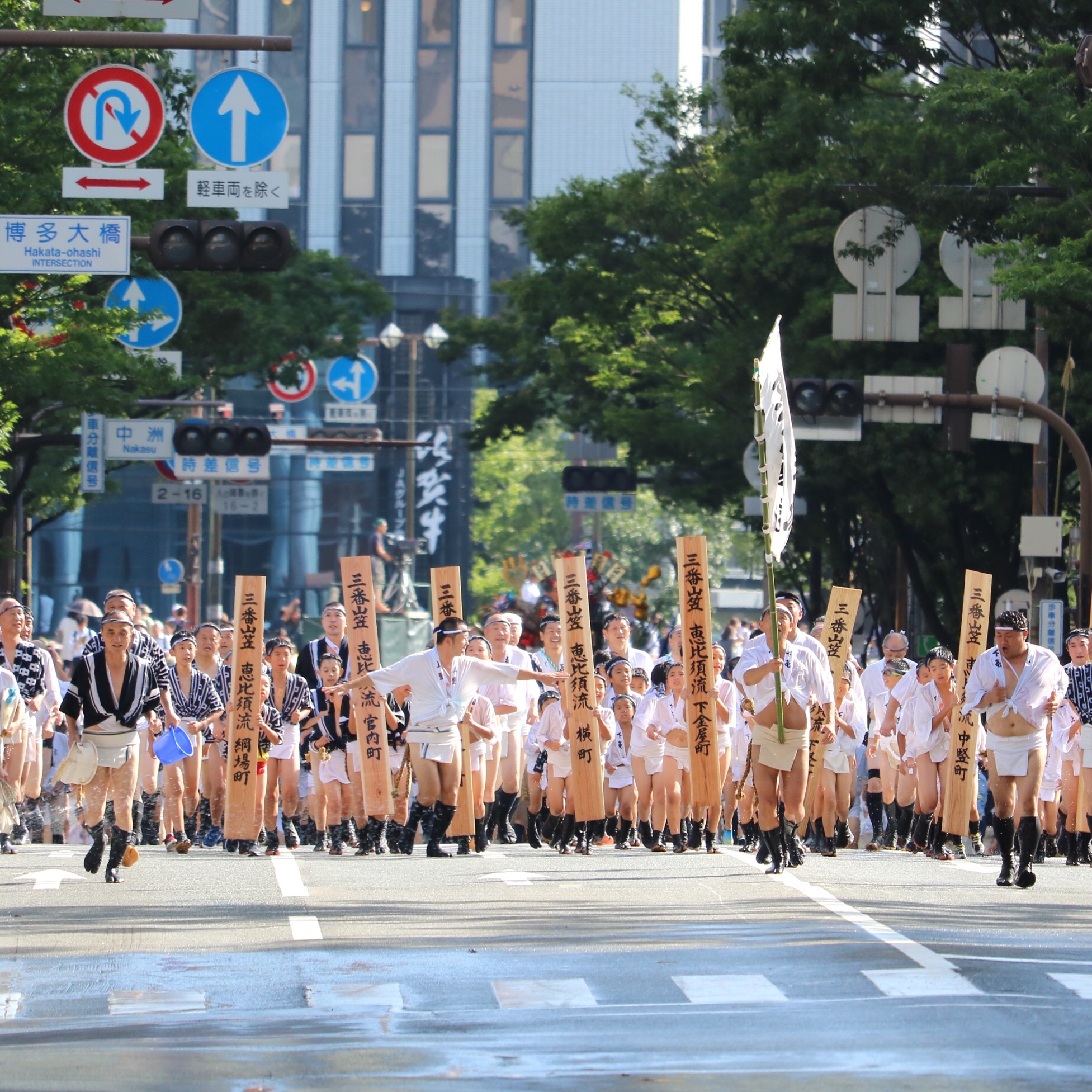 7月13日は集団山見せで、博多の祭りである博多祇園山笠が、唯一福岡部に山笠を舁き入れるイベントです。