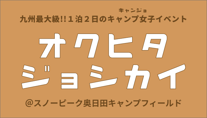 「オクヒタジョシカイ」はおしゃれキャンプ写真で大人気の「キャンジョ」がプロデュースする九州最大級のキャンプ女子会で、本イベントはキャンプ場使用料(4180円)と入場料(大人:500円 小人:300円)だけで入場が可能です。