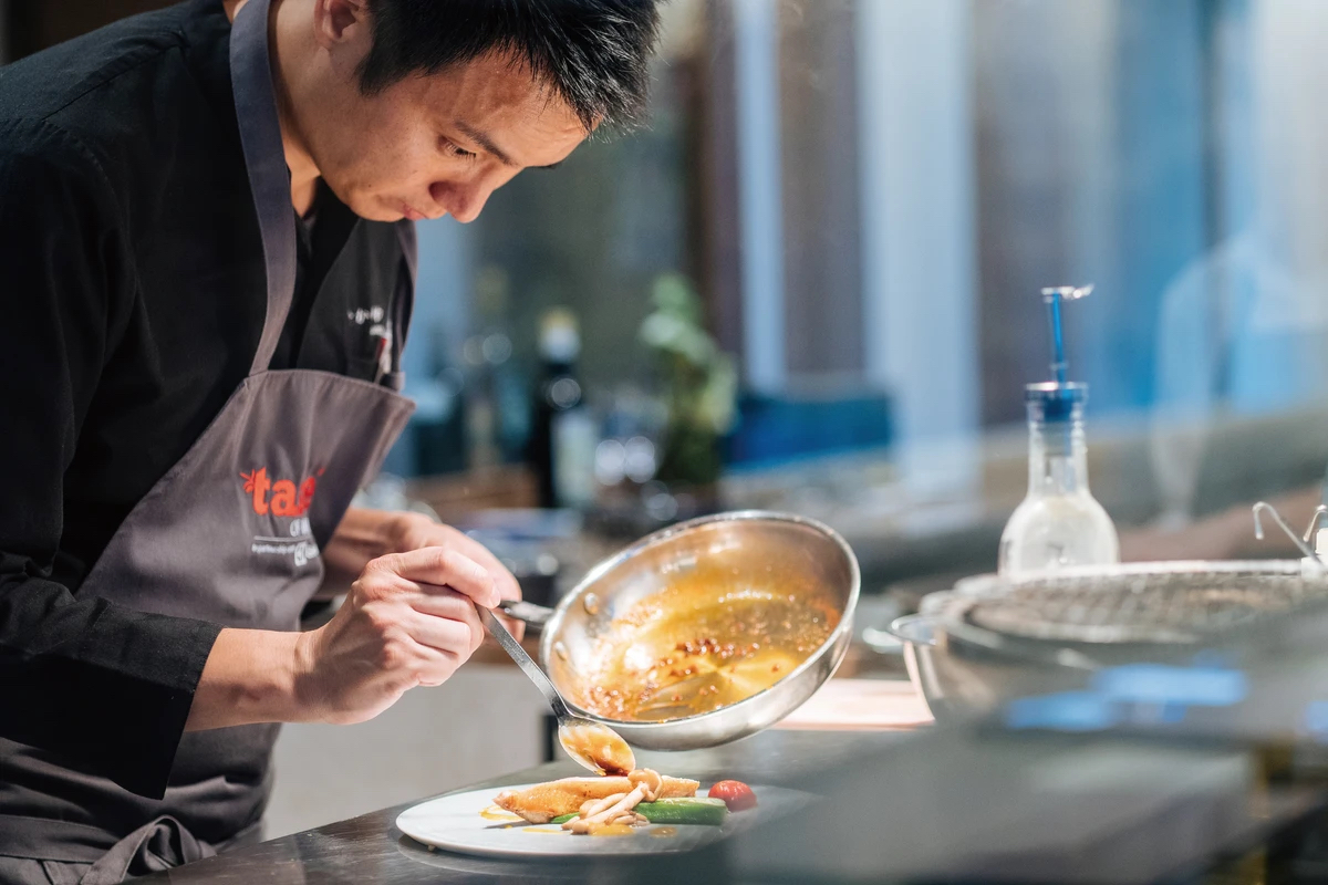 ▼明太子と柚子のリゾット、博多和牛と栗のリゾット