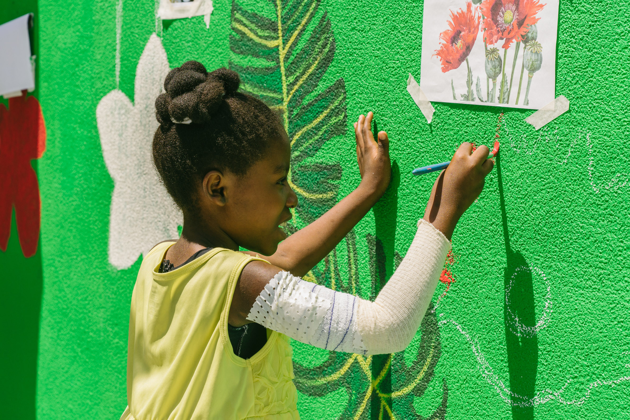 2019 ハイチ共和国 首都ポルトープランスにある「国境なき医師団」の病院に患者と一緒に壁画を描く。