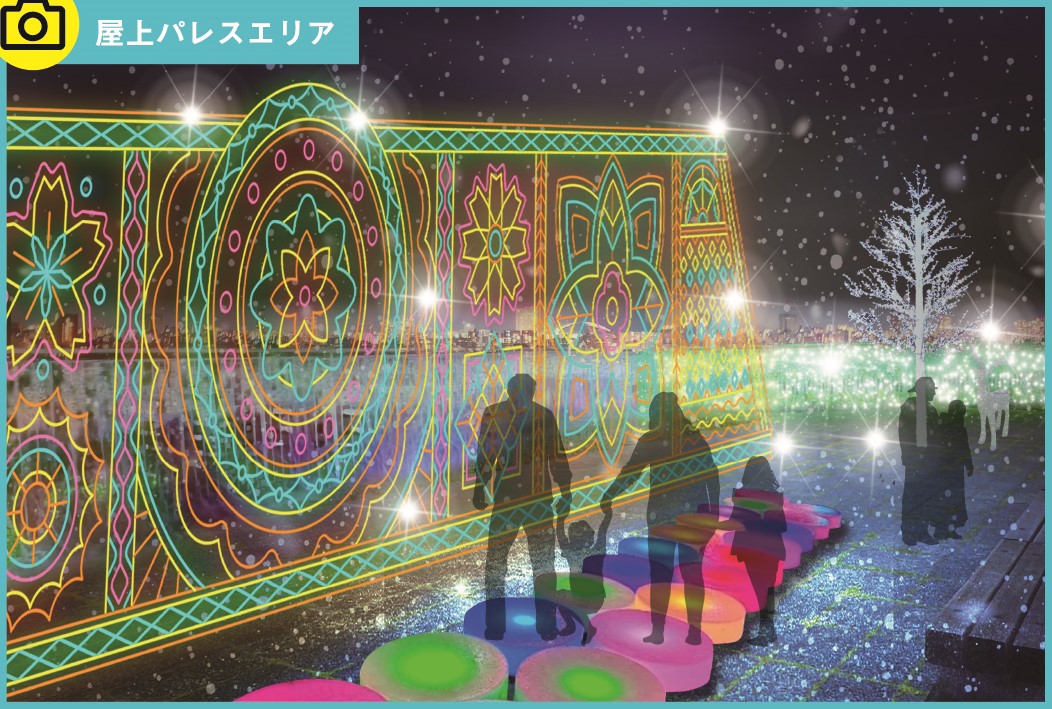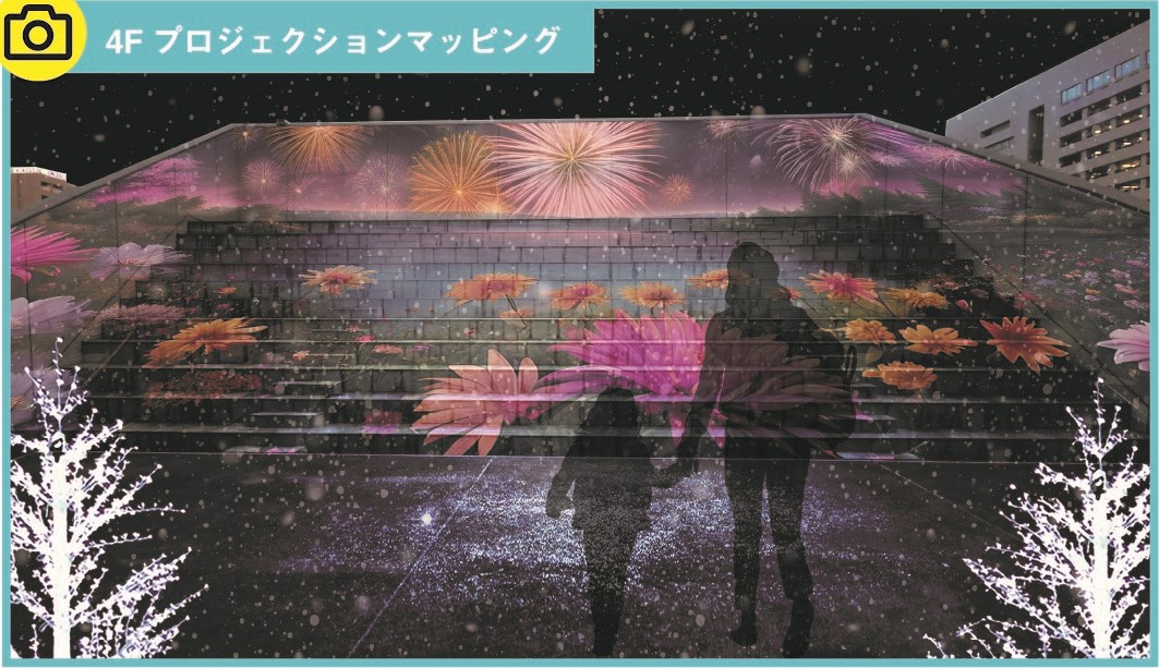 また、光のトンネルやお魚エリアなど、美しい演出が施されており、さらに今年から新たにプロジェクションマッピングエリアもあるので、これまでに見たことのないような本格的で美しいイルミネーションの世界を楽しむことができます。