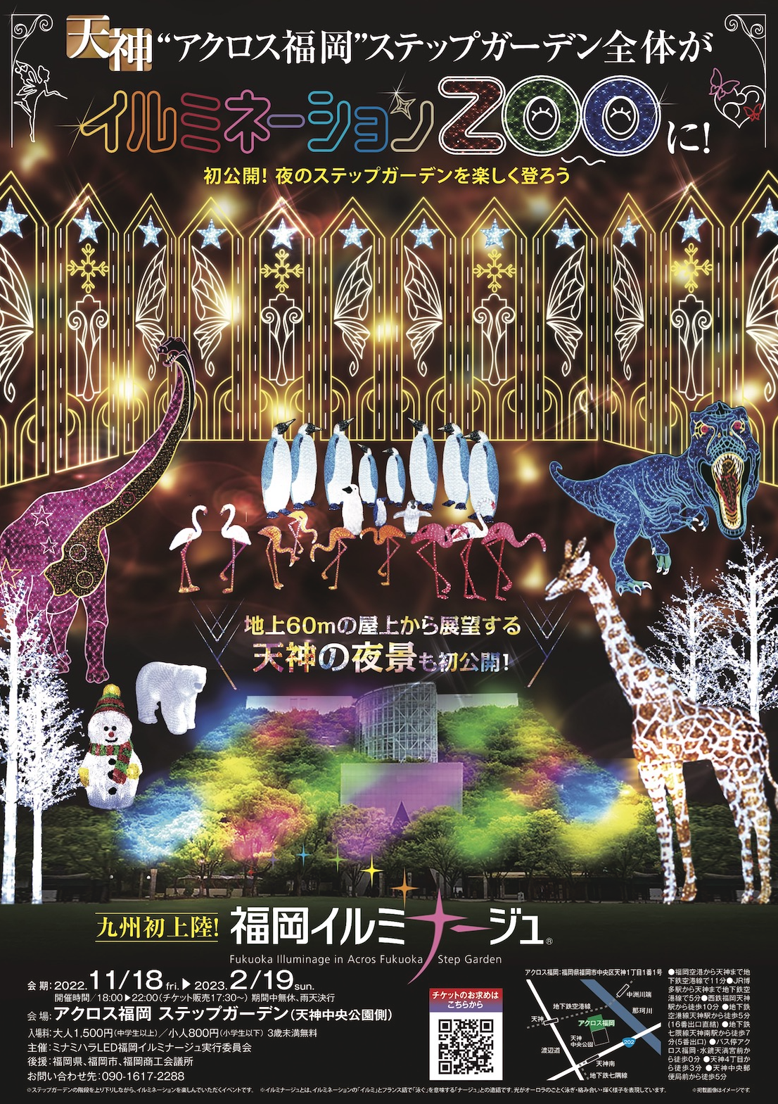 「福岡イルミナージュ」は、神戸で10年以上愛されてきたイルミナージュが九州初上陸するもので、この冬、アクロス福岡 ステップガーデンが、イルミネーションZOOに彩られます。