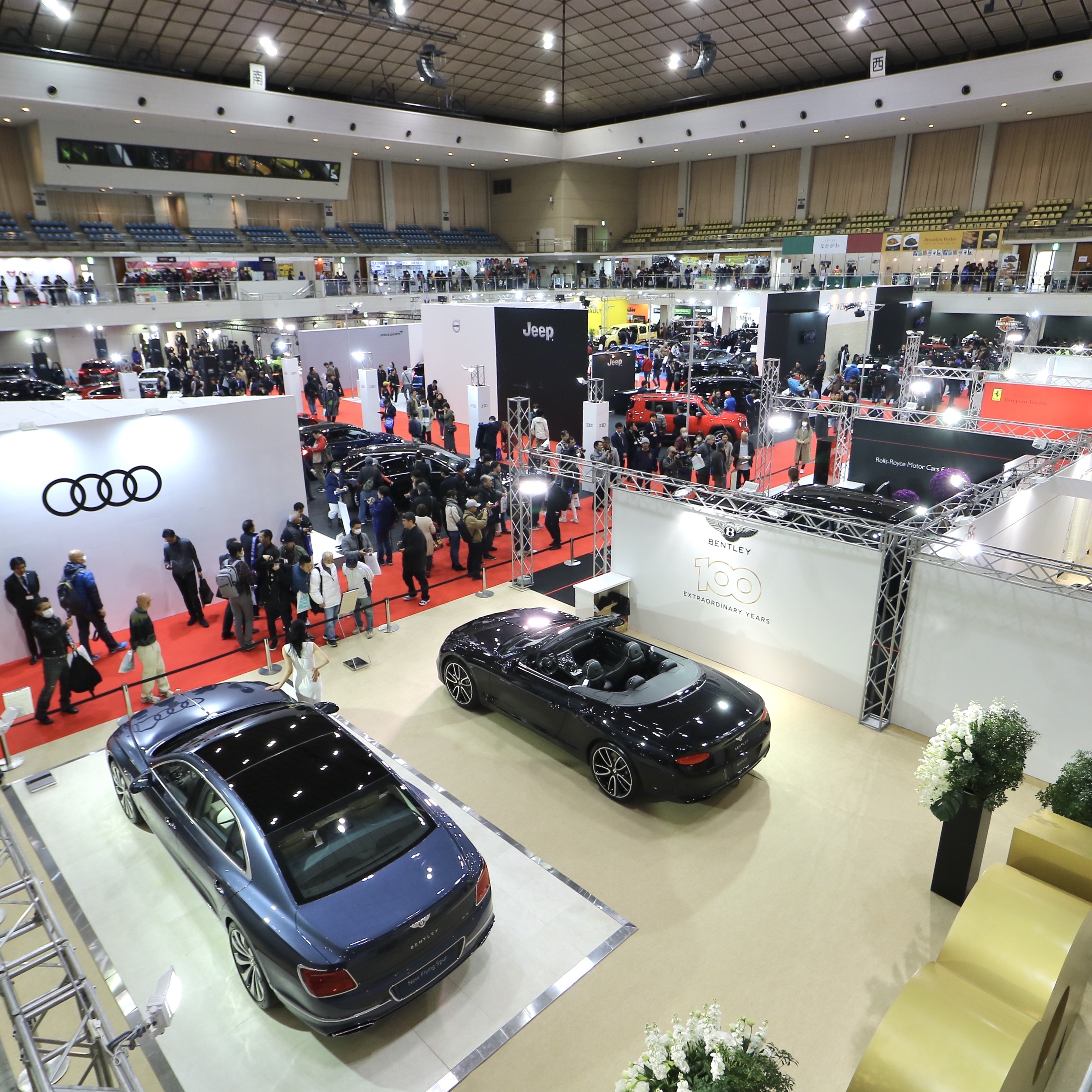 福岡国際センターでは、輸入四輪19ブランド、輸入二輪等など9ブランドが出展。