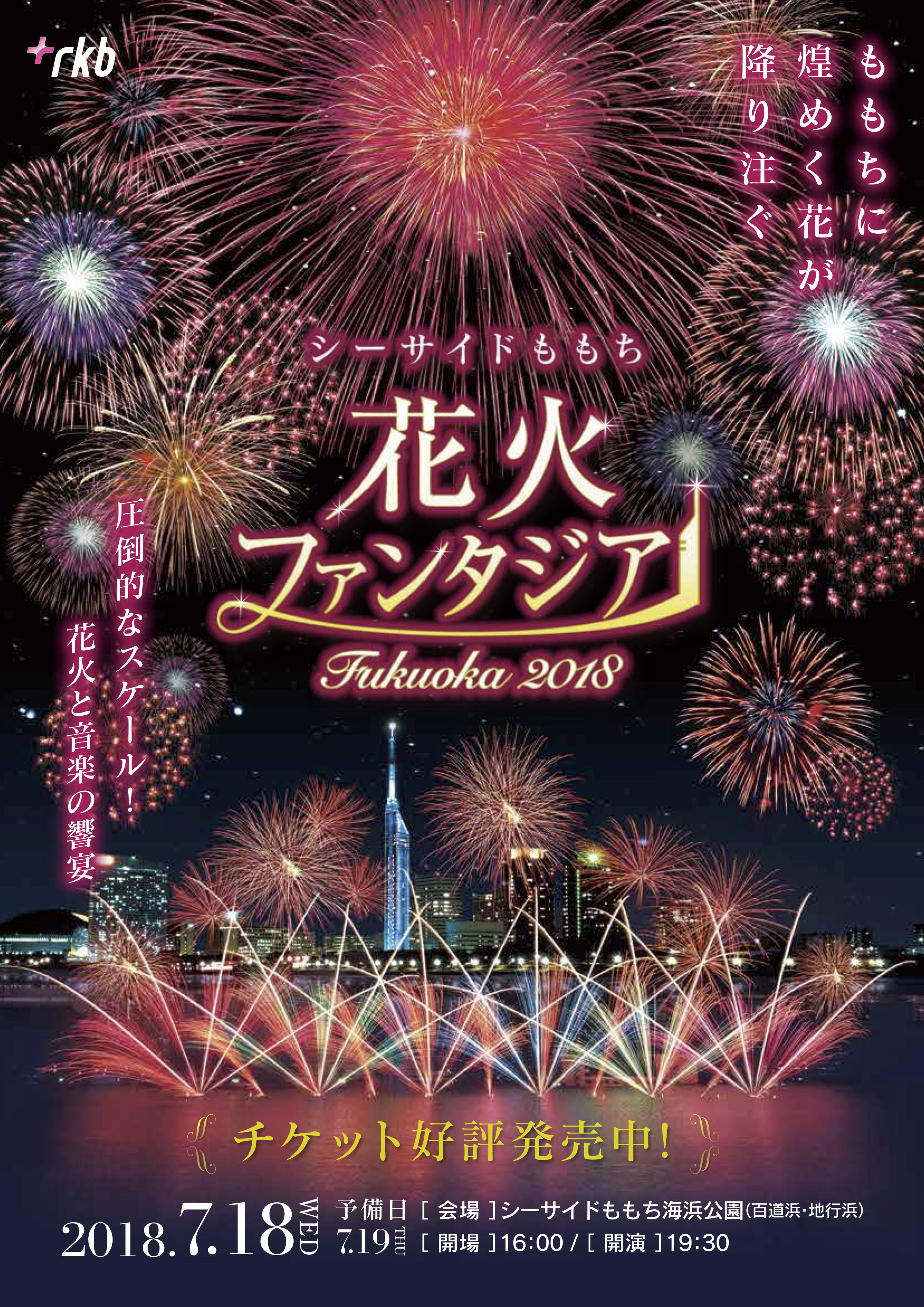 2018年07月18日 百道浜の花火大会「シーサイドももち花火ファンタジアFukuoka2018」開催概要。幅1km×最高450mの音楽連動花火。 2018年7月18日(水)、シーサイドももち海浜公園で、花火大会「シーサイドももち花火ファンタジアFukuoka2018」が開催されます。専用のコンピューターで花火と音楽を0.03秒差でシンクロさせる、世界最先端のハイパー花火ショーで、音楽に合わせて花火が踊り、走り出します。▼追記:「シーサイドももち花火ファンタジアFukuoka2018」レポート 国際大会でに高評価を受ける「丸玉屋」の花火師たちが、百道浜の夏を彩ります。シーサイドももち花火ファンタジアFukuoka2018 公式PV シーサイドももち花火ファンタジアFukuoka2018 プロモーション動画 昨年の「シーサイドももち花火ファンタジア」2017レポートはこちら。 シーサイドももち花火ファンタジアFukuoka2018 < 前の記事次の記事 >