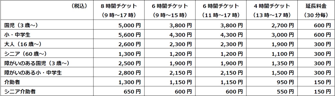 ※障がいのある方の料金は別途設定いたします。