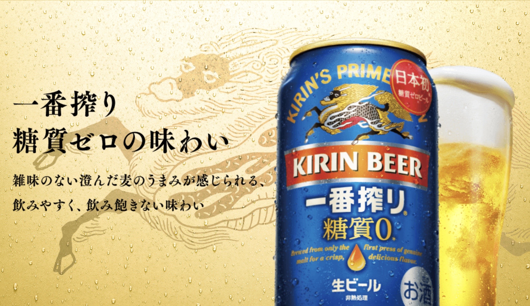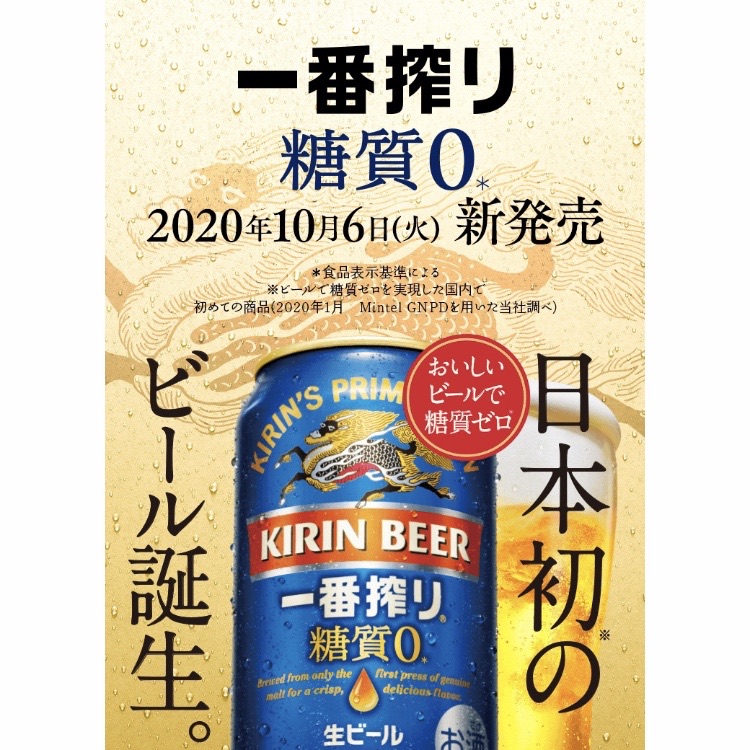 2020年10月6日(火)、キリンビールより、日本初の糖質ゼロビール「キリン一番搾り 糖質ゼロ」が販売開始となります。