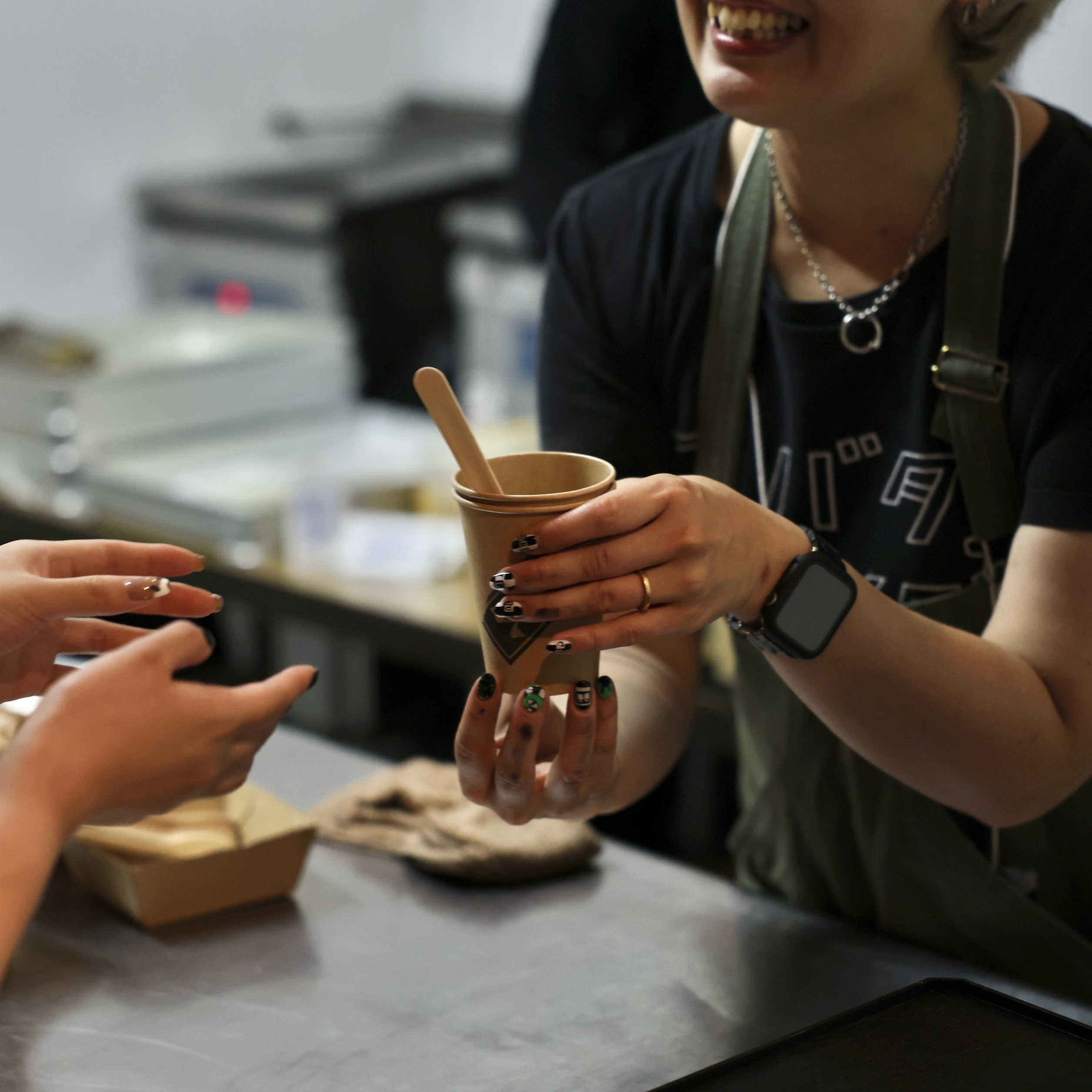 受付で配布されたほろ酔いシールは、ほっぺなどに自由にお貼りいただけます。