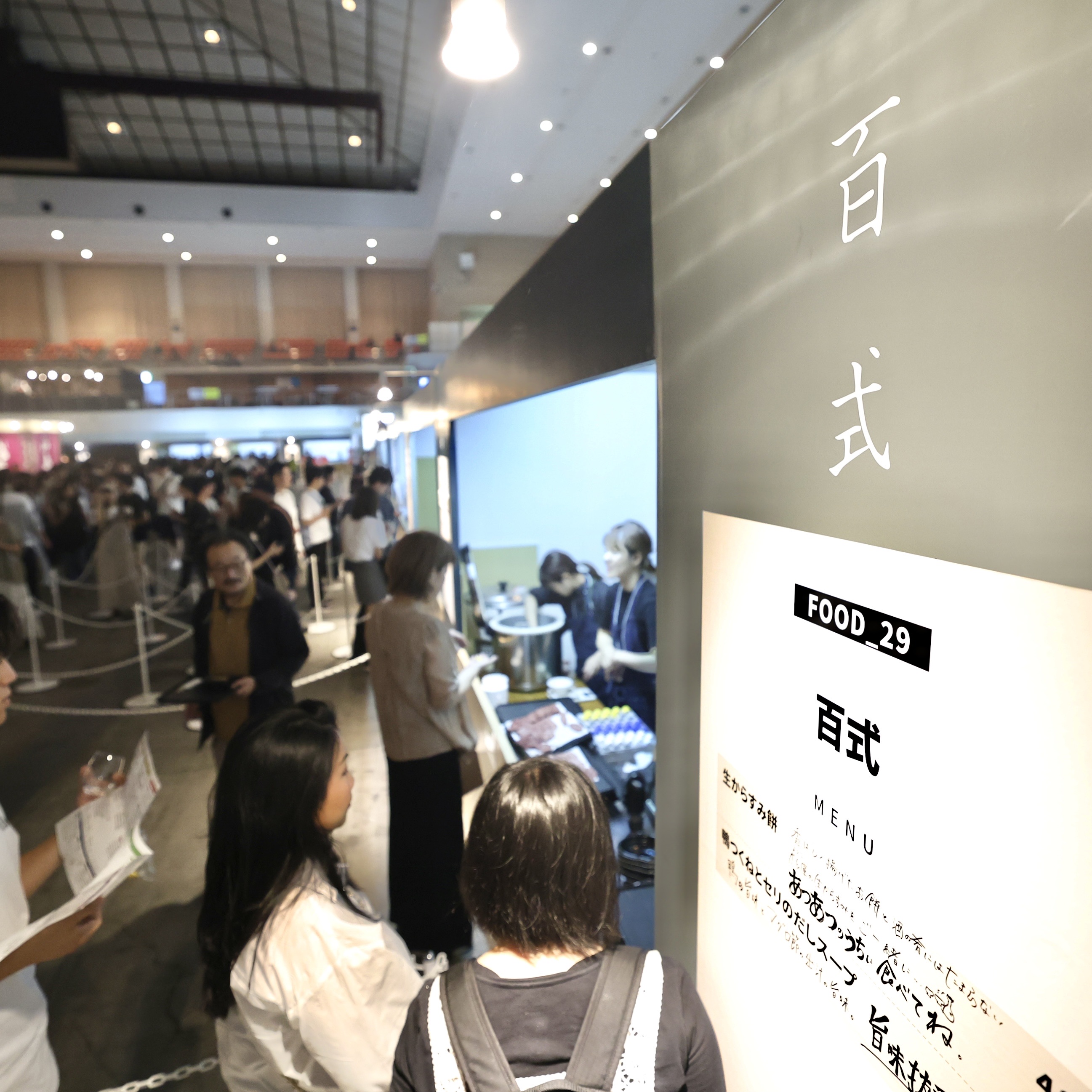 1Fステージ上からのKUCHINASHI酒蔵ブース方向の風景。