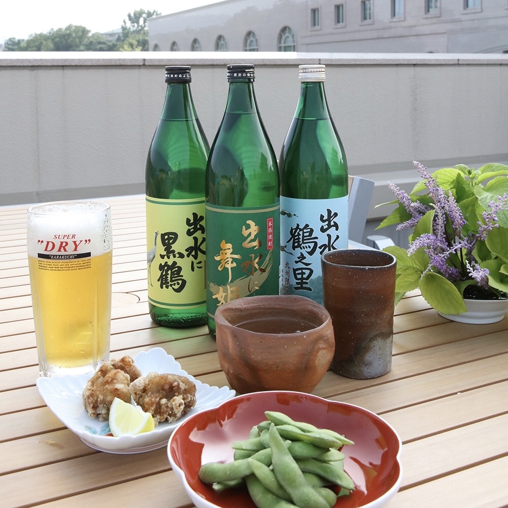 都会の喧騒から離れた緑豊かな環境で、鹿児島県の出水酒造の本格芋焼酎3銘柄を飲みくらべることができます。