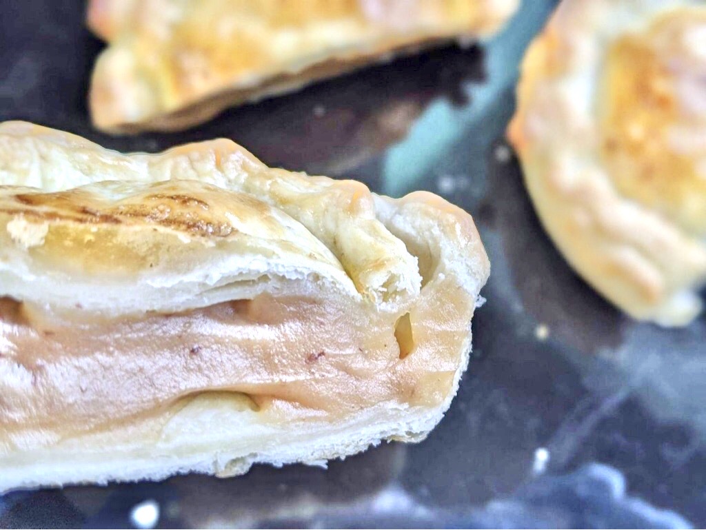 バターたっぷりのパイ生地で栗の餡を包みました。秋を先取りした、和洋折衷の甘味パイです。