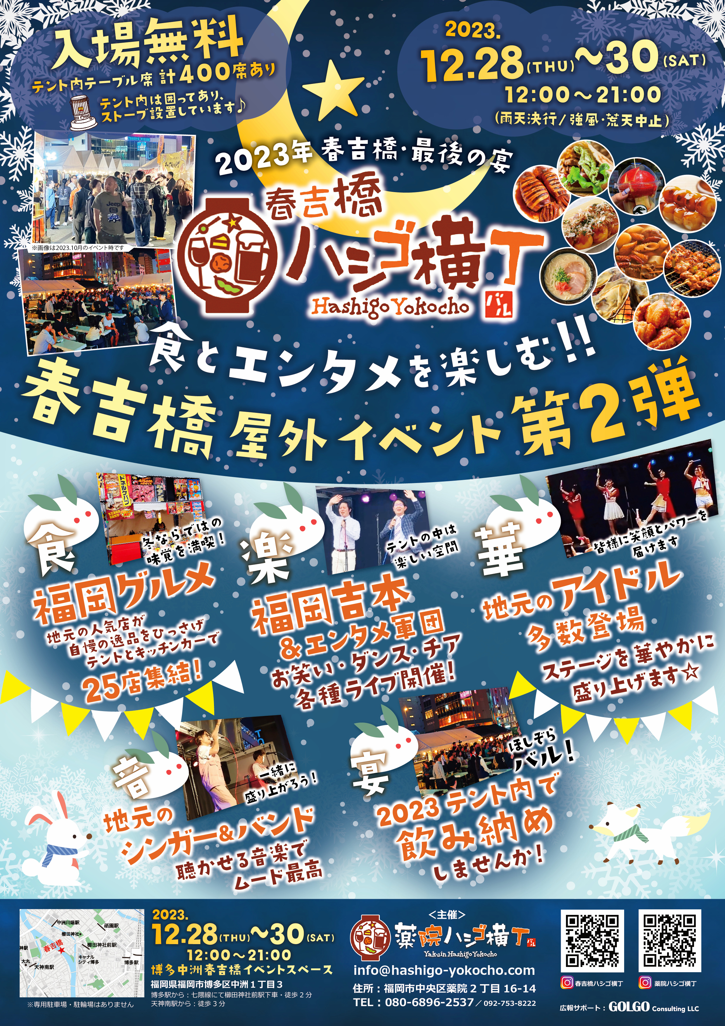 福岡の中心地にて、「グルメとエンタメの融合」がテーマの、2023年忘れ屋外イベントを実施。