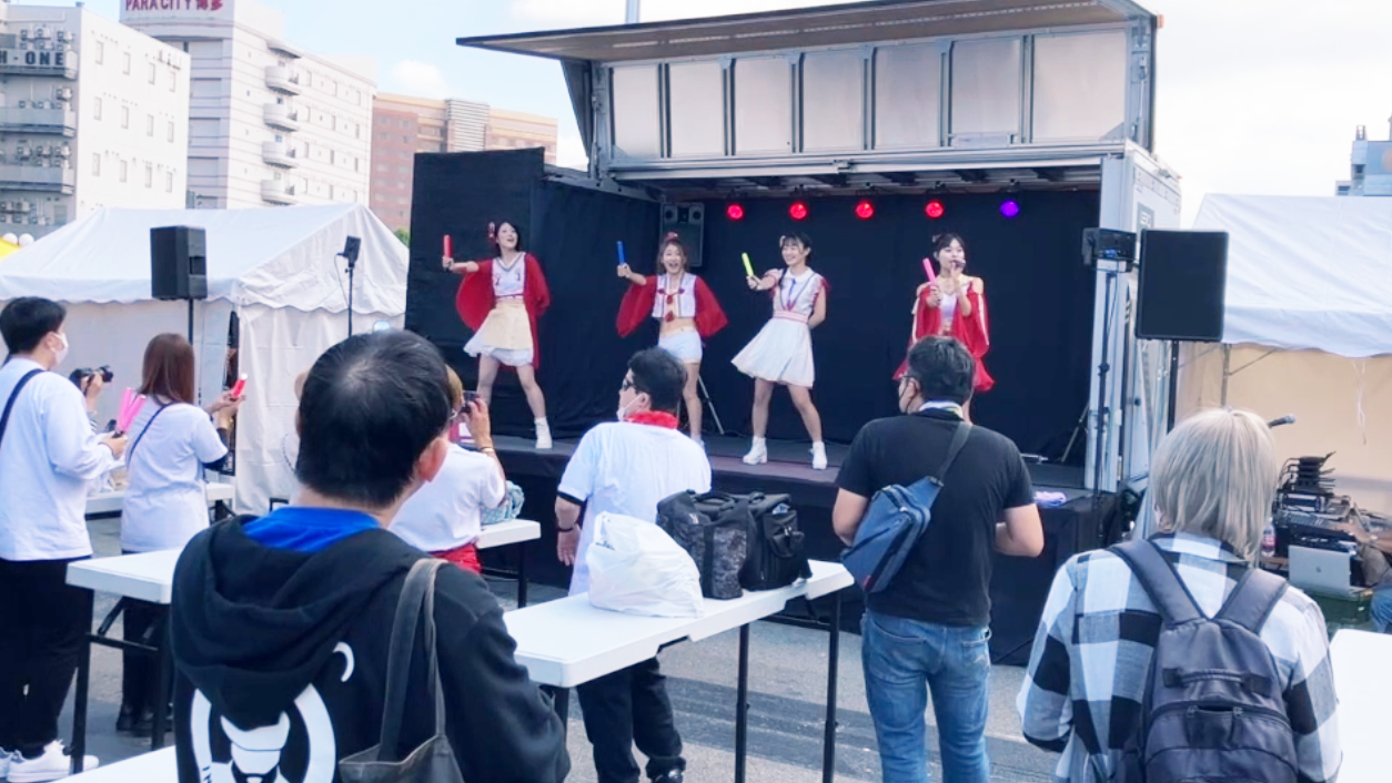 地元福岡・九州からアイドルグループの華やかなステージ。