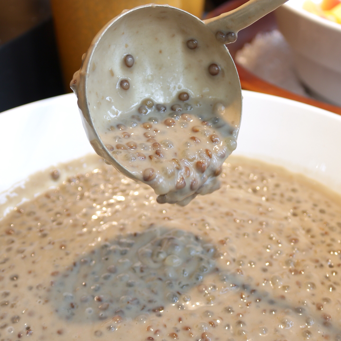 ヒルトンスイーツ:プルッインティ(もち米団子とココナッツのトッピング)、ブブプルッヒッタム(黒いお米のスイートポリッジ)、アガーアガークラパ(ココナツプディング)、サゴグラムラカ(タピオカシードとパームシュガー)、ドドル(もちもち米粉のデザート)、ブアブハン(フレッシュフルーツプラッター)、バナナケーキ、ライチのトロピカルスープボウル、ビターチョコレートファウンテンなど