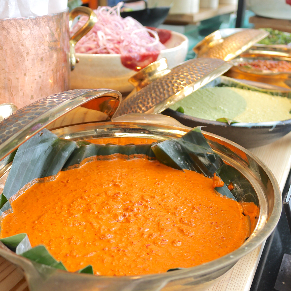 サティアヤム(チキンとビーフのサティ・ピーナッツソース)、ルンダン(ココナッツミルク風味のスパイシースープカレー)、ウダンサンバル(車海老のチリペースト)ほか、数々のマレーシア料理を堪能することができます。