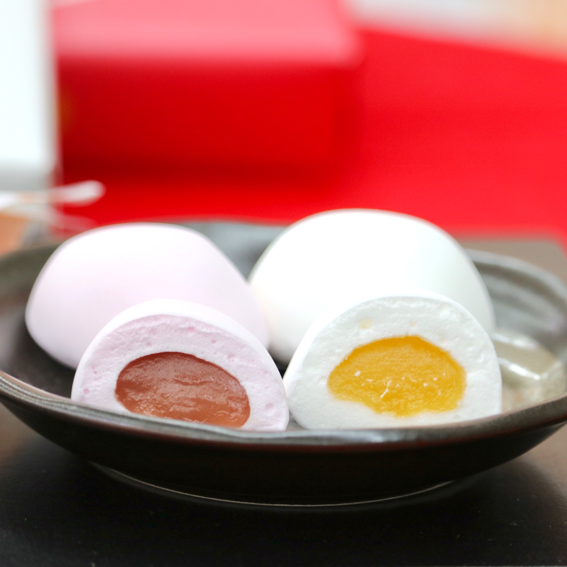 紅白鶴乃子は通常、白のみ、赤のみと別々に販売中ですが、今回はトヨタカローラ福岡とのコラボということで、特別にパッケージをデザインして、紅白をそれぞれ一つずつ入れるそうです。