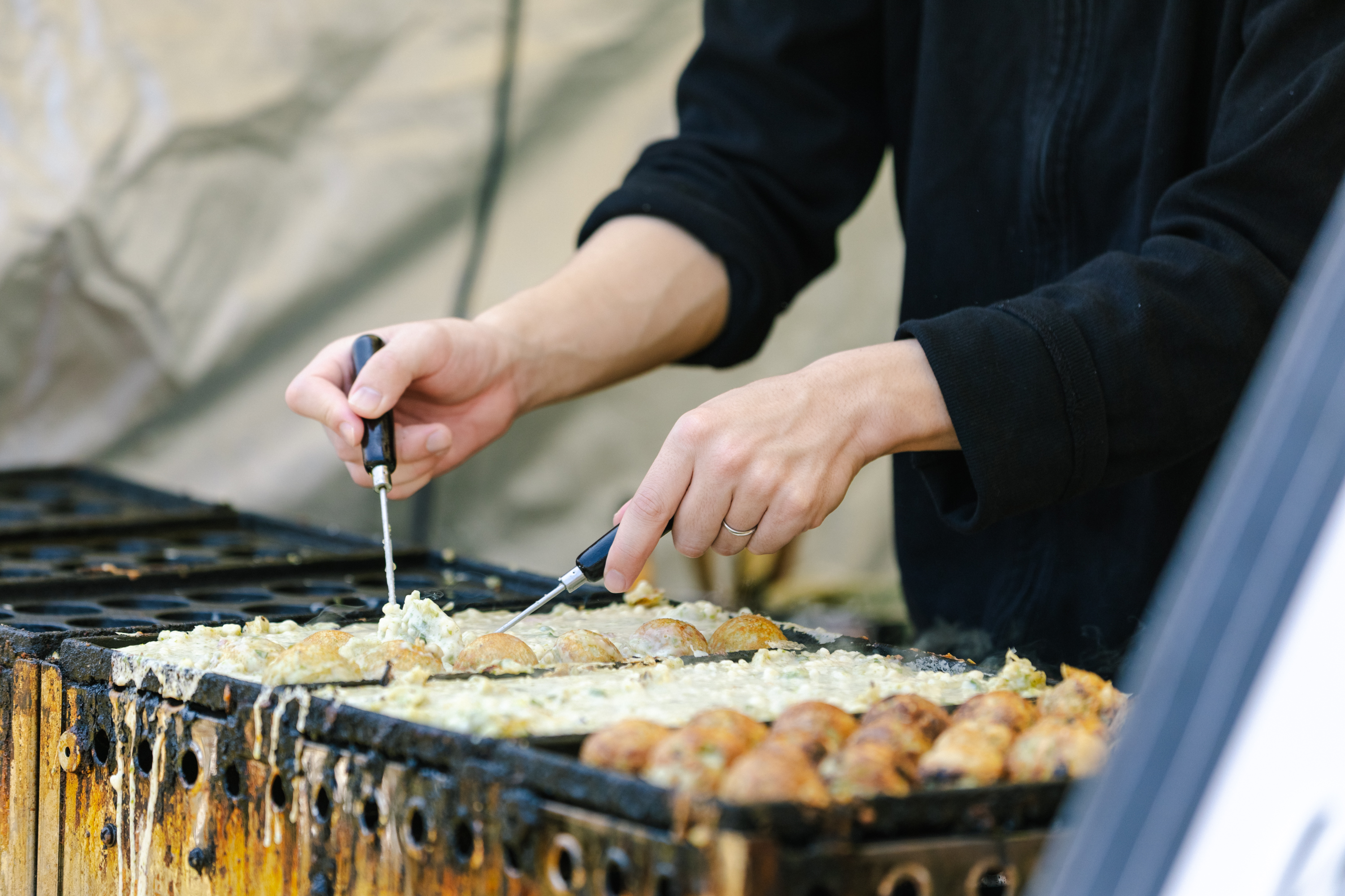 出店と出演:福岡近郊のからあげ処(約20店舗)、地元グルメのフードテント(10店舗~)