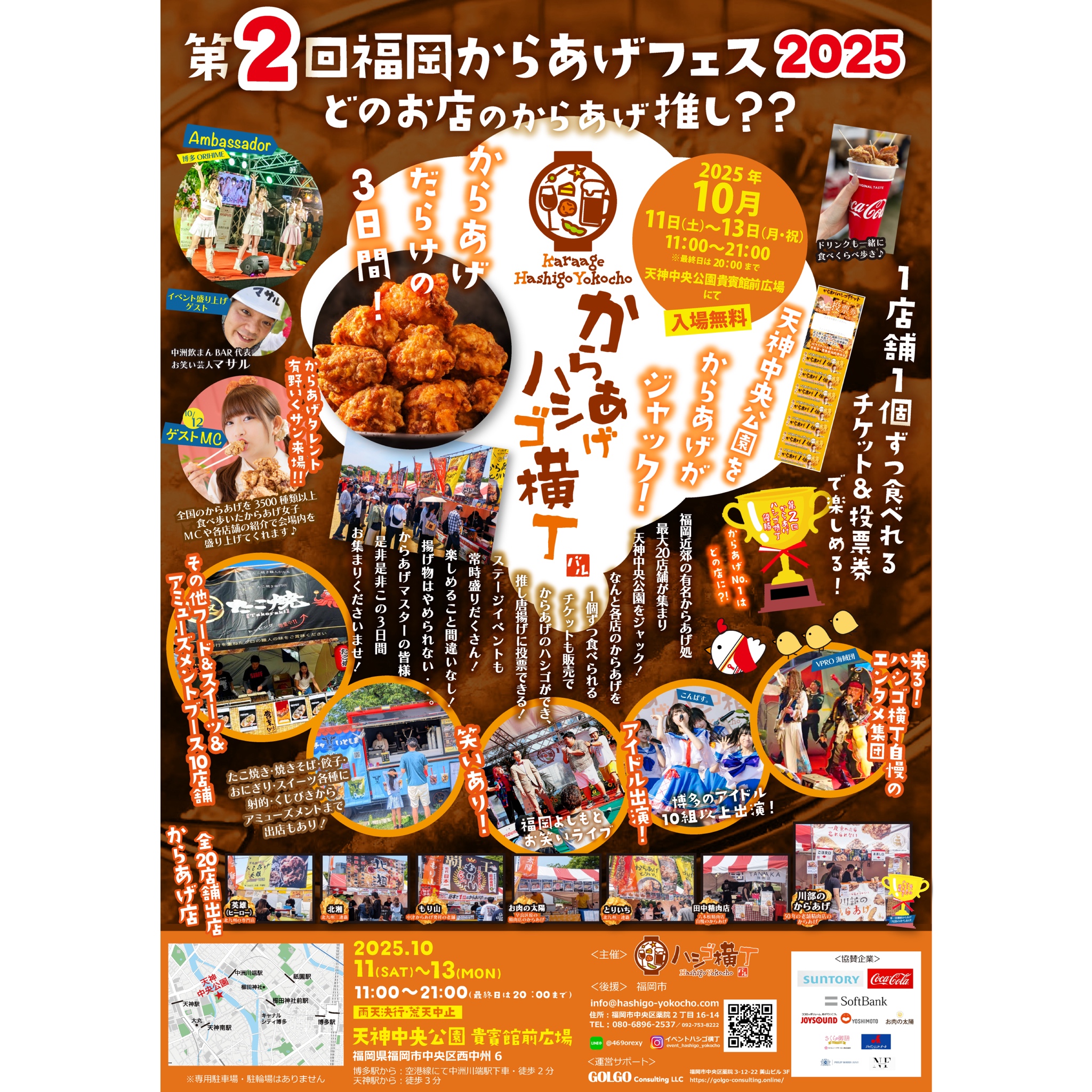 2025年10月11日(土)~13日(月・祝)の3日間、福岡県福岡市中央区西中州の天神中央公園 貴賓館前広場にて、「第2回からあげハシゴ横丁」が開催されます。