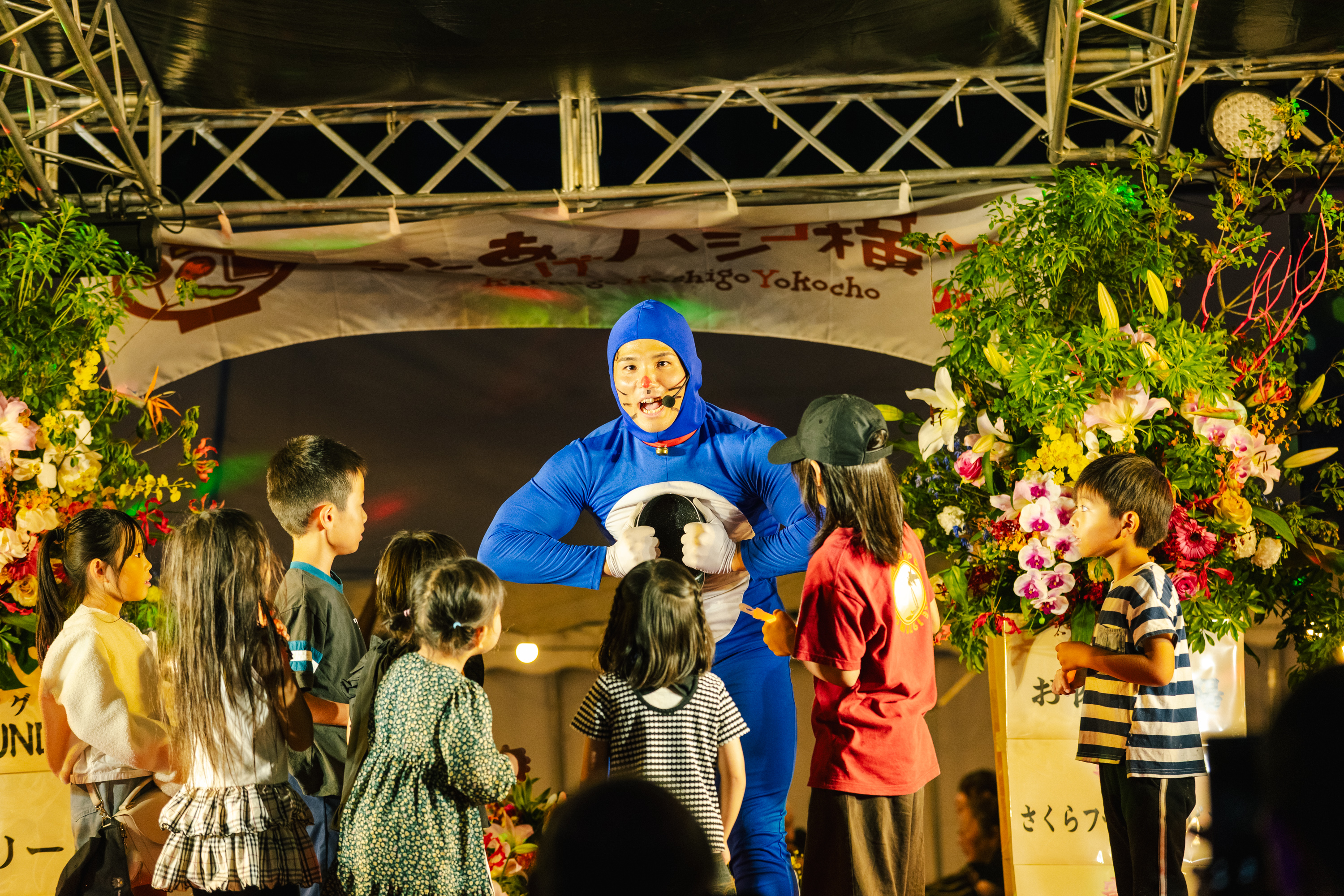 福岡吉本お笑いライブやエンタメパフォーマー、シンガー&バンドの演奏、地元アイドルグループ、中洲の人気店スタッフのステージなど。