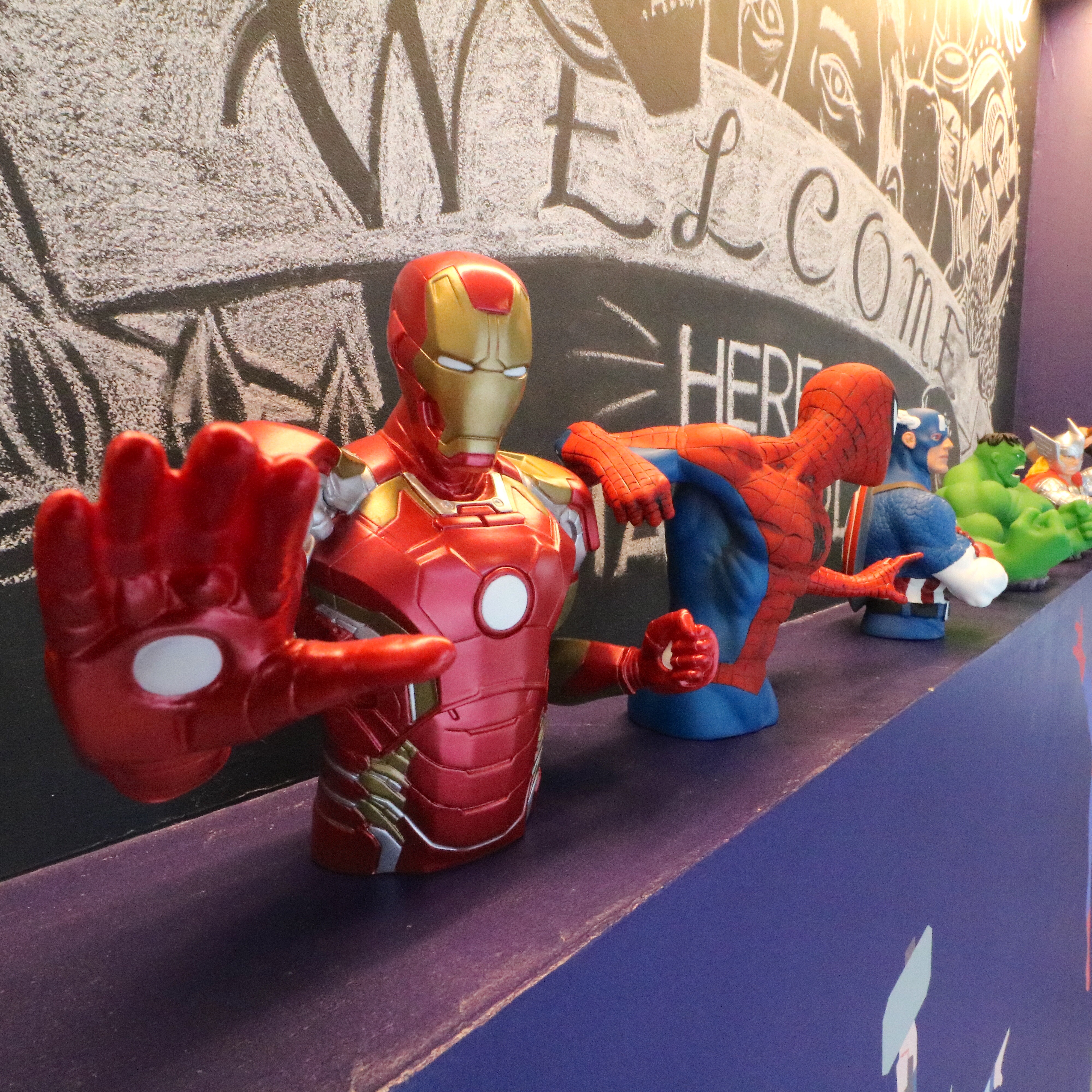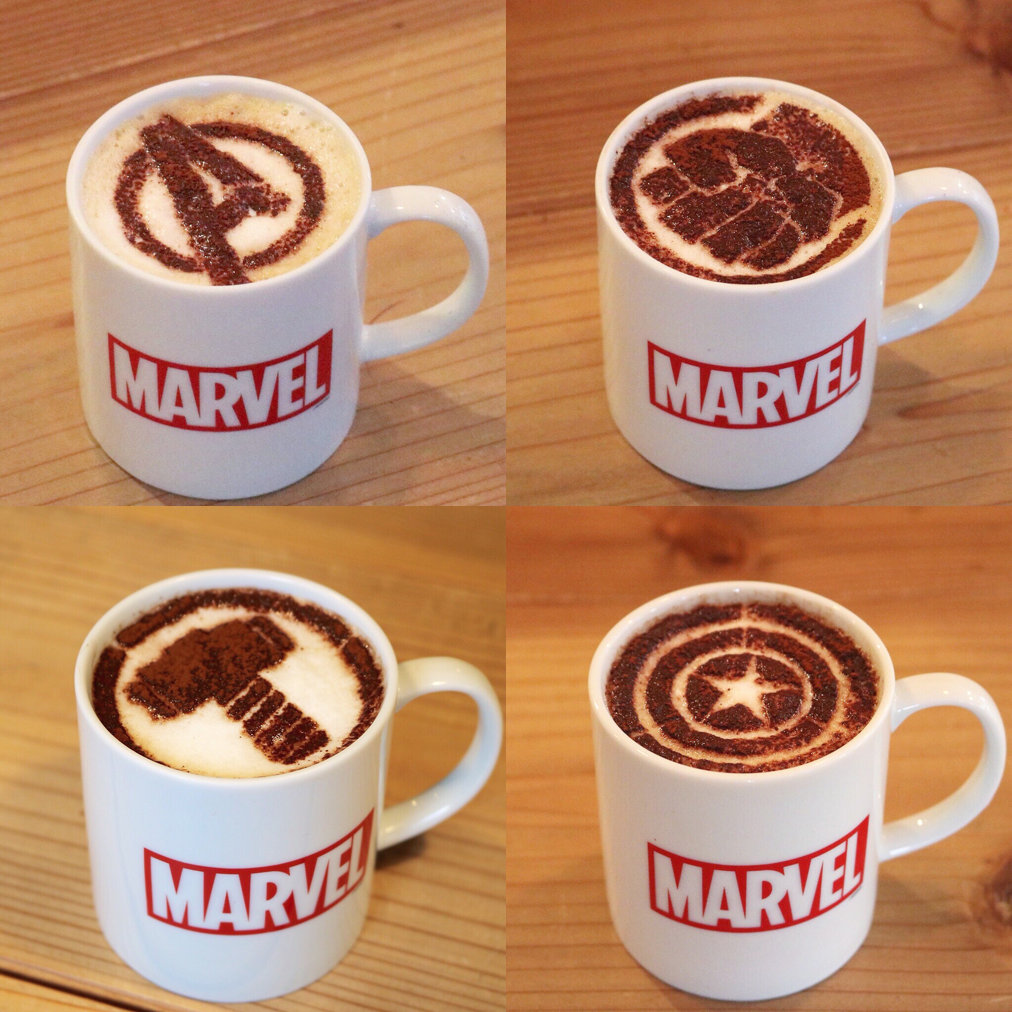 この「マーベル・カフェ」は、映画「アベンジャーズ/インフィニティ・ウォー」の4月27日(金)公開を記念したもので、店内にはマーベル映画に登場する人気キャラクターたちのオブジェやフィギュアが設置され、ここでしか食べられないメニューが提供されます。