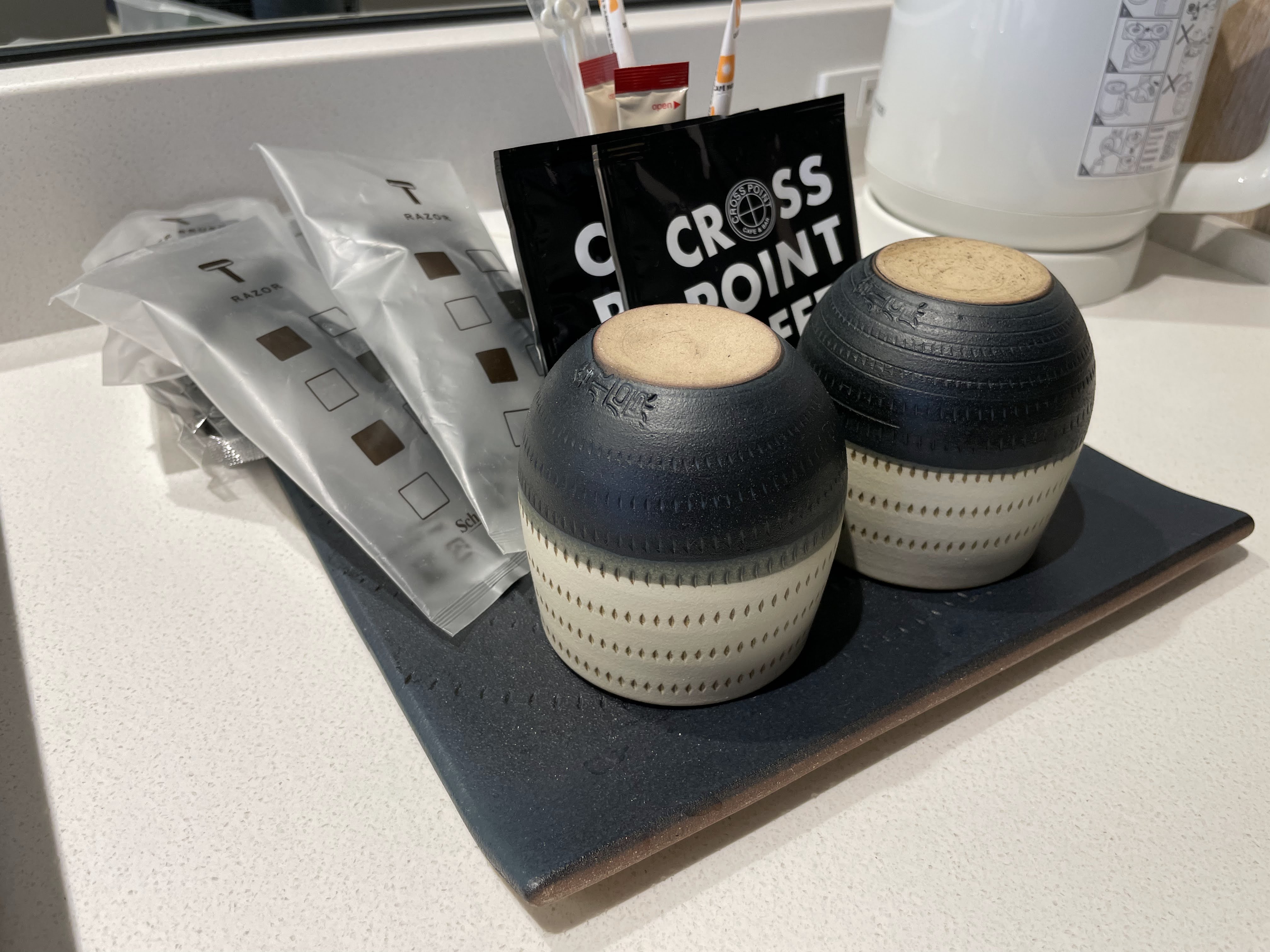 フロントの右横、カフェ「CROSS POINT」の前を通って、客室に向かいます。